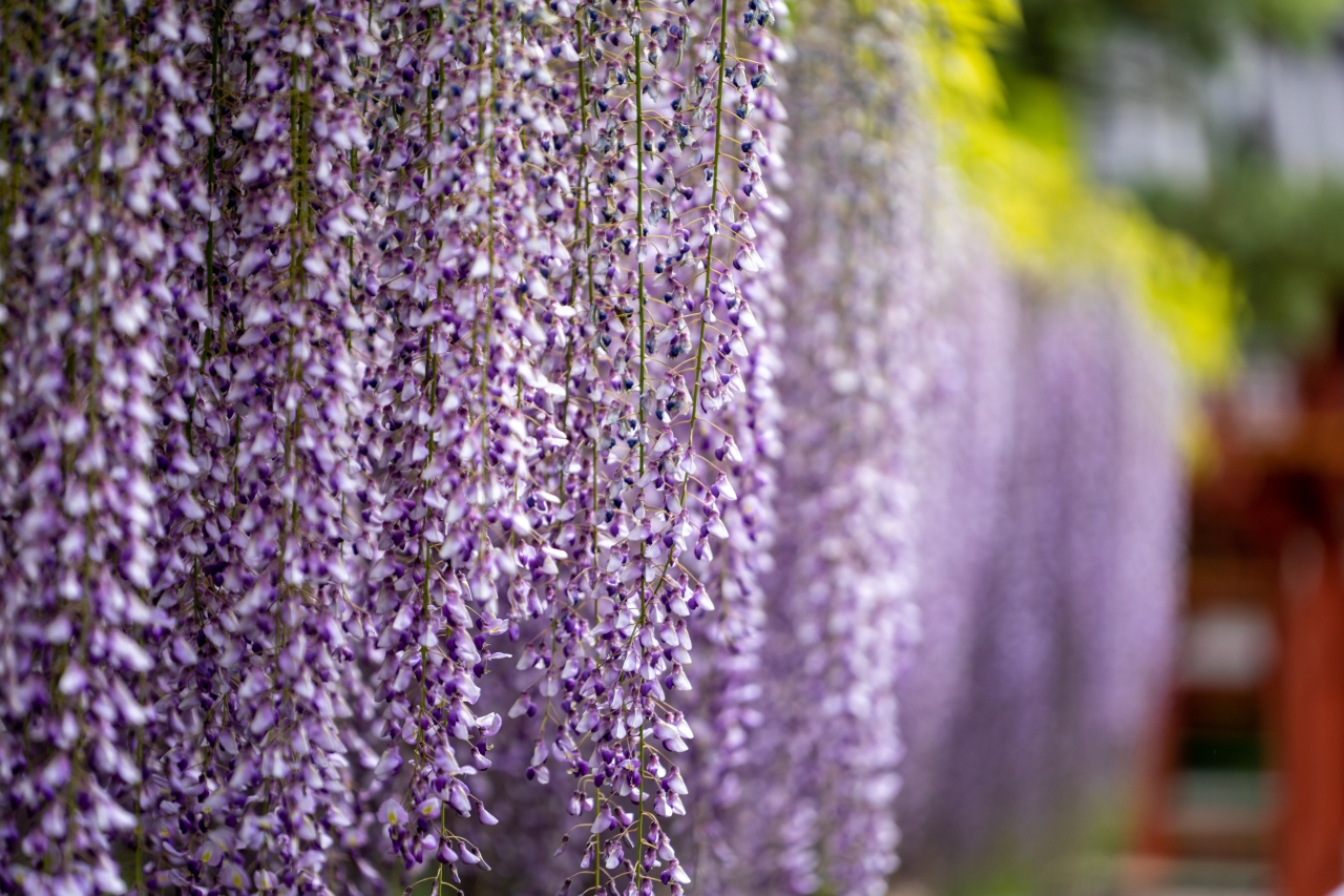 Byōdō-in is a UNESCO World Heritage site, and its main hall, the Amida-dō or Phoenix Hall, is one of the rare buildings that has survived for a thousand years without major damage, making it one of Japan’s most important cultural treasures. In the Heian period, there was a popular saying: if you do not have faith, go to Byōdō-in, and faith will find you. It was believed that the temple possessed such an ethereal beauty that, upon seeing it, it was impossible not to believe in a higher power. The Phoenix Hall’s wings, reminiscent of a phoenix spreading its wings, and its reflection in the spring water before it create a majestic beauty found nowhere else in Japan. It’s one of those places where every season offers a unique beauty, but May is perhaps the most spectacular. In this month, when the country bursts into vibrant shades of green, the wisteria also bloom. One of the wisteria trellises is nearly 300 years old, and seeing the temple framed by its cascading purple flowers is an unforgettable sight.