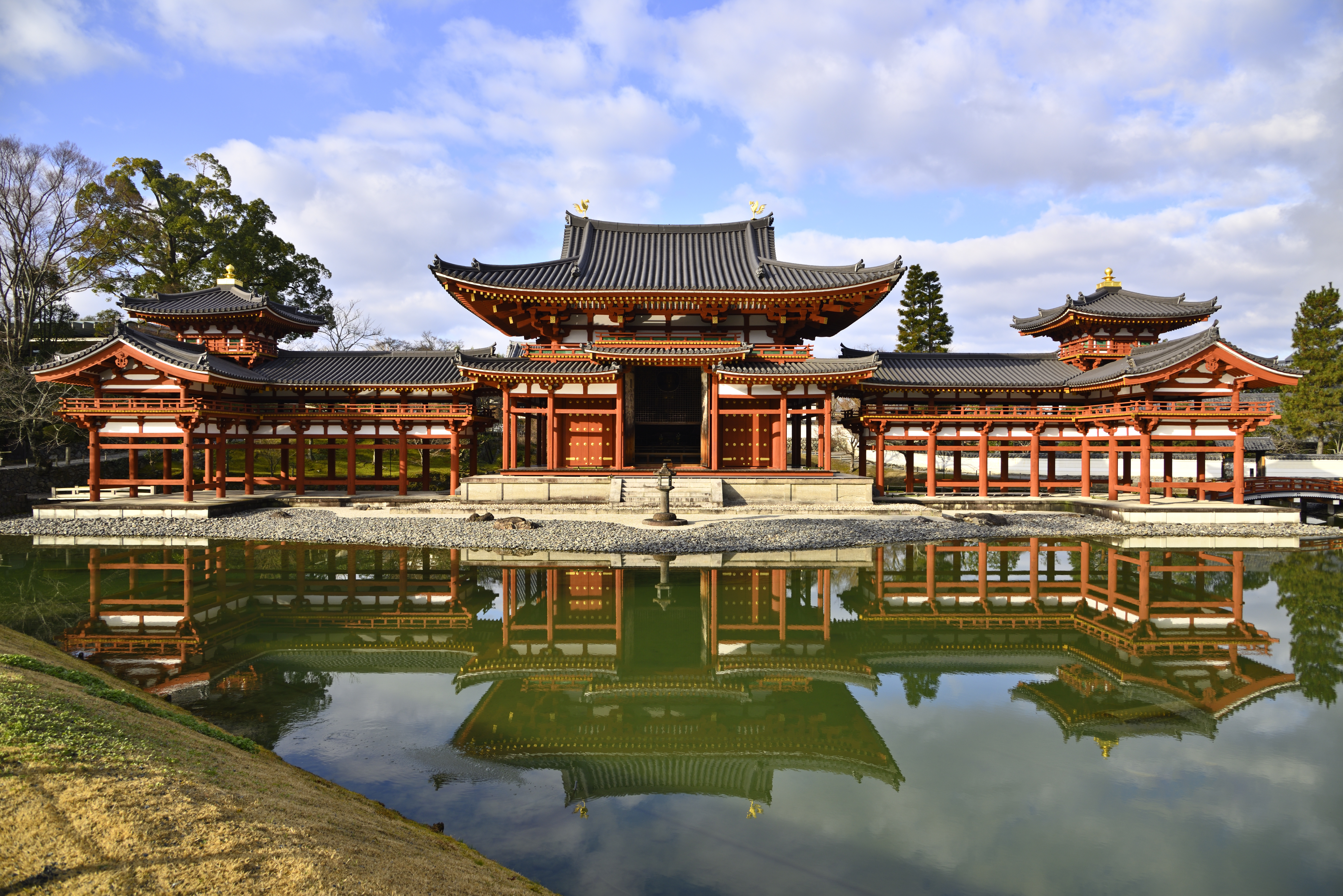 Byōdō-in glows in the morning light. Facing east, the rising and late-morning sun provide the perfect conditions for photography, as the gold of the famous Amida Buddha and the phoenixes on the roof reflect the sunlight beautifully. It’s definitely worth seeing the Amida-dō Hall from the inside. They believed the Buddha statue embodied the very pinnacle of beauty—so perfect that, for people of the time, nothing in the world could surpass it. Tickets are sold separately, and visitors are admitted every 20 minutes with a maximum of 50 people, so during peak seasons there can be a long wait. If you’re short on time, don’t be disappointed—the museum on the temple grounds houses all of the temple’s treasures and even features full-size reproductions of the hall’s paintings.