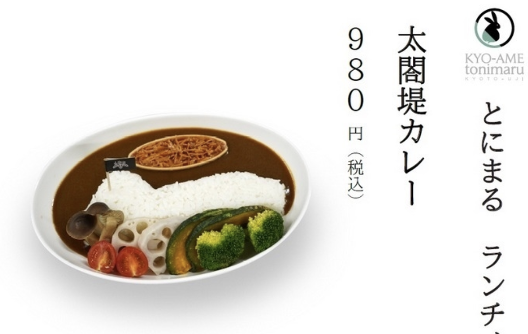 Chazuna offers a variety of dishes and desserts, with its most famous being the “Taikōtsutsumi Curry”. Inspired by Uji’s scenic landscape and dam, it’s not only delicious but fun to look at. “Taikō” refers to Toyotomi Hideyoshi, who commissioned the dam to protect the Uji River.