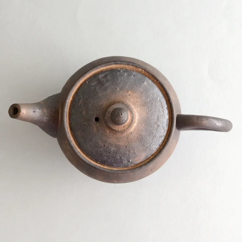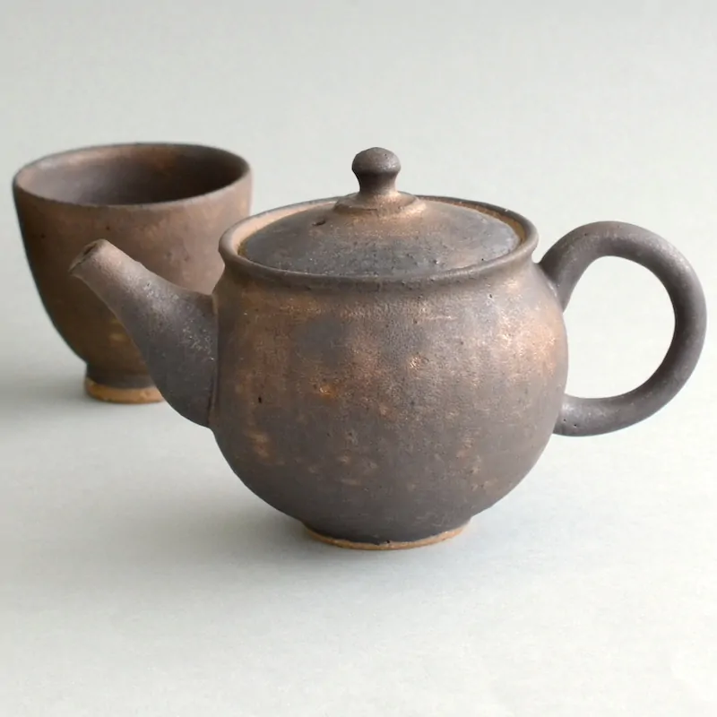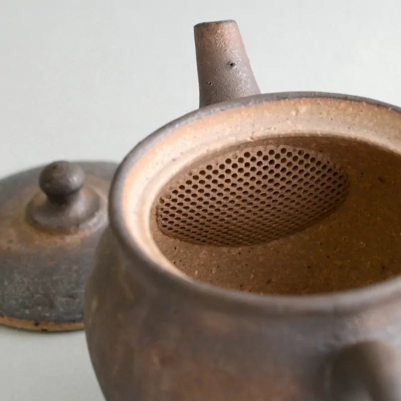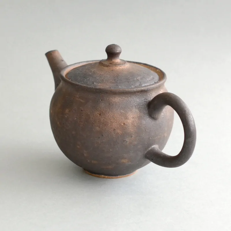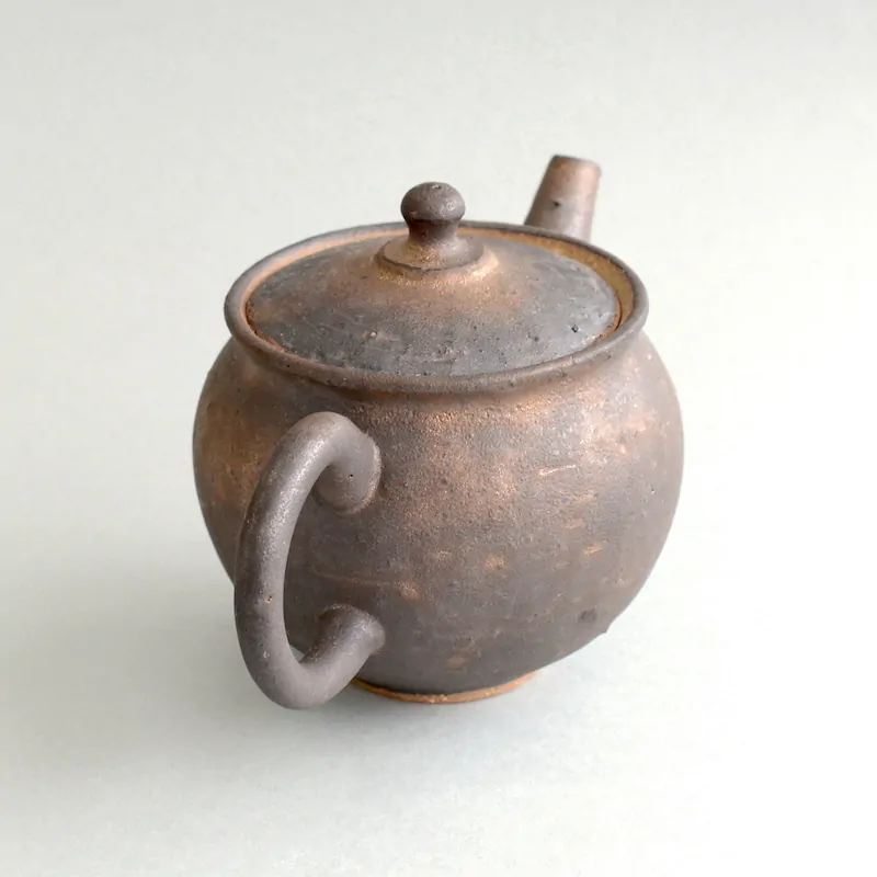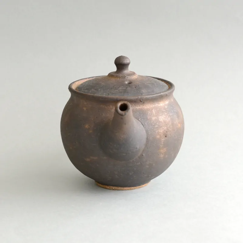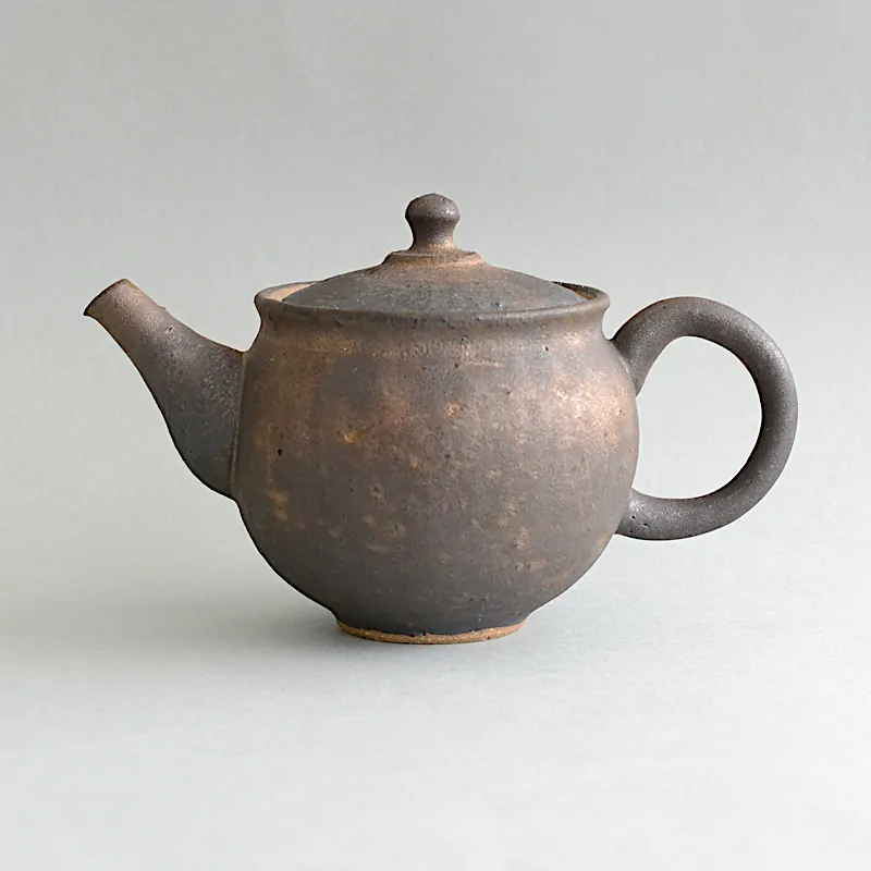 This dark and rustic surface is achieved by a glaze that is Master Junzō's own innovation. This glaze is pervious, which means the teapot is still considered unglazed in its aroma-absorbing qualities. The glaze can vary from dark matte to dark golden brown.