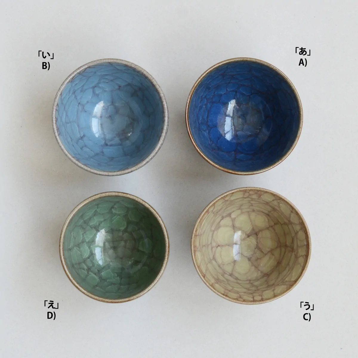 We have four different variations of the Kannyu Kumidashiwan tea cup: