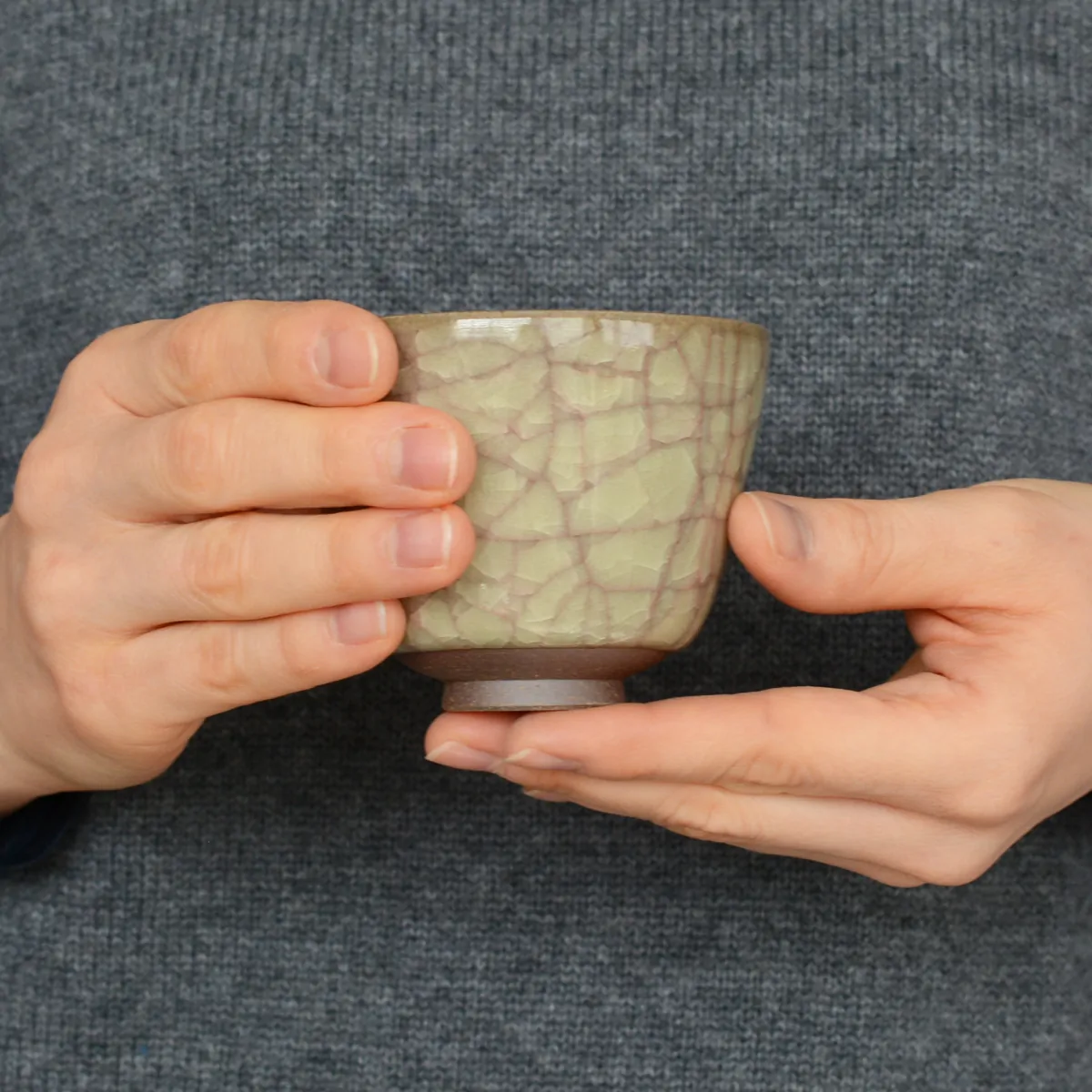 Handmade ceramic teacup with "Ice Crackle" finish