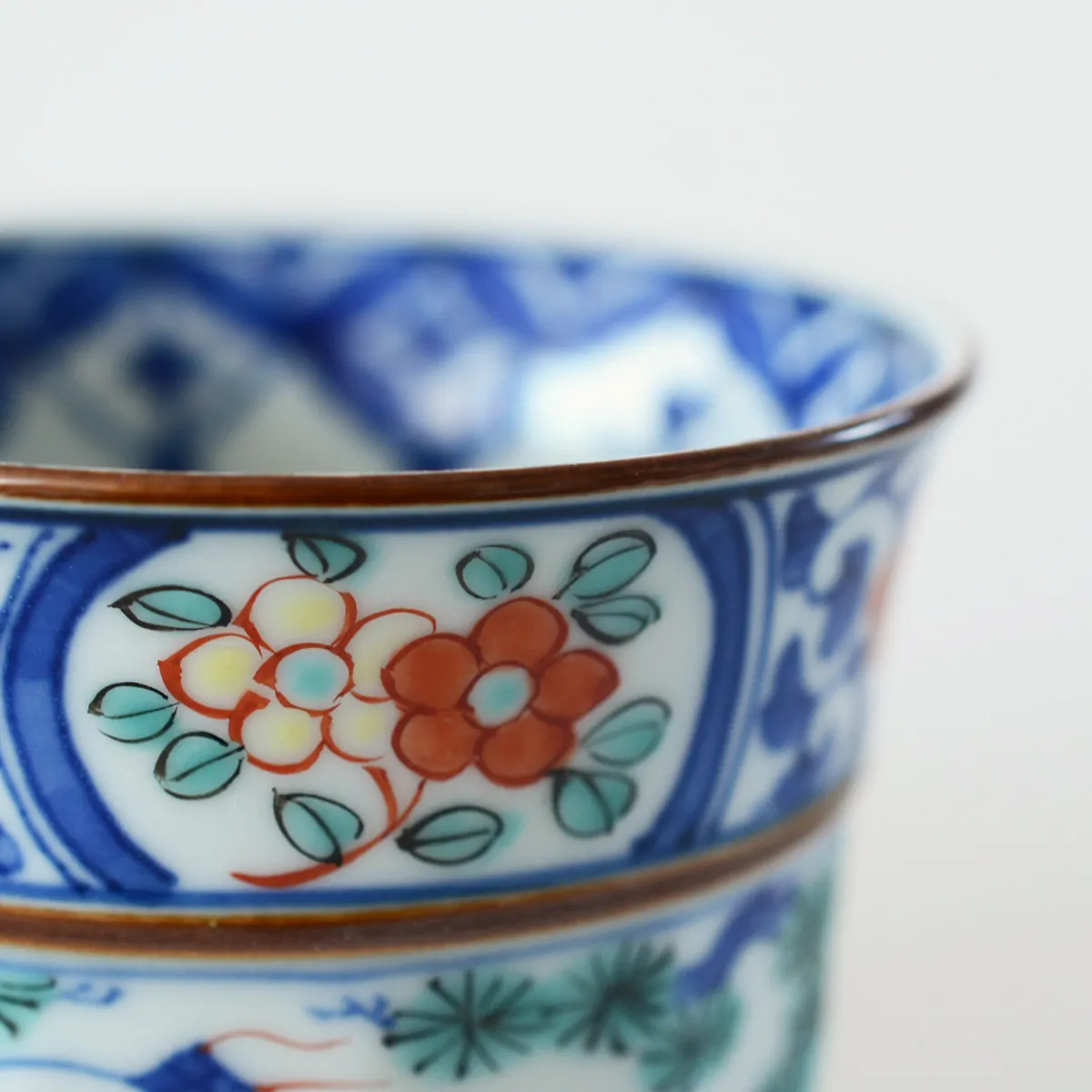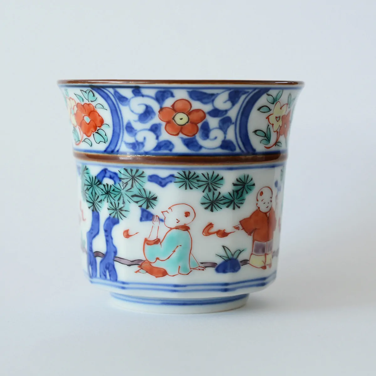 The teacup depicts playing children. The motif is taken from the Chinese symbolism. The reign of the Ming Dynasty was not a peaceful time, there were wars, several outside tribes attacked the empire. Due to the constant bloodshed, the population dropped drastically, so they appreciated children more than ever. The word “karako” means "Tang child", and depicting them has become a symbol of great luck and innocence.
