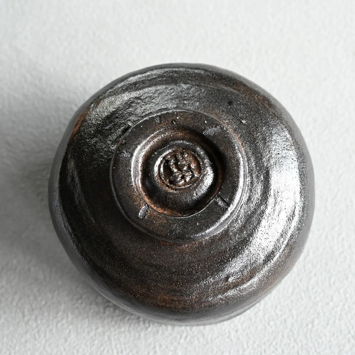 This chawan embodies everything we understand as wabi-sabi aesthetics. Its rim is beautifully irregular, with a natural undulating line, and the glaze reveals an intriguing texture with a deep, blackish-brown hue. With its humble elegance, Kasshiki chawan is a striking piece of art—a standout in any chawan collection.