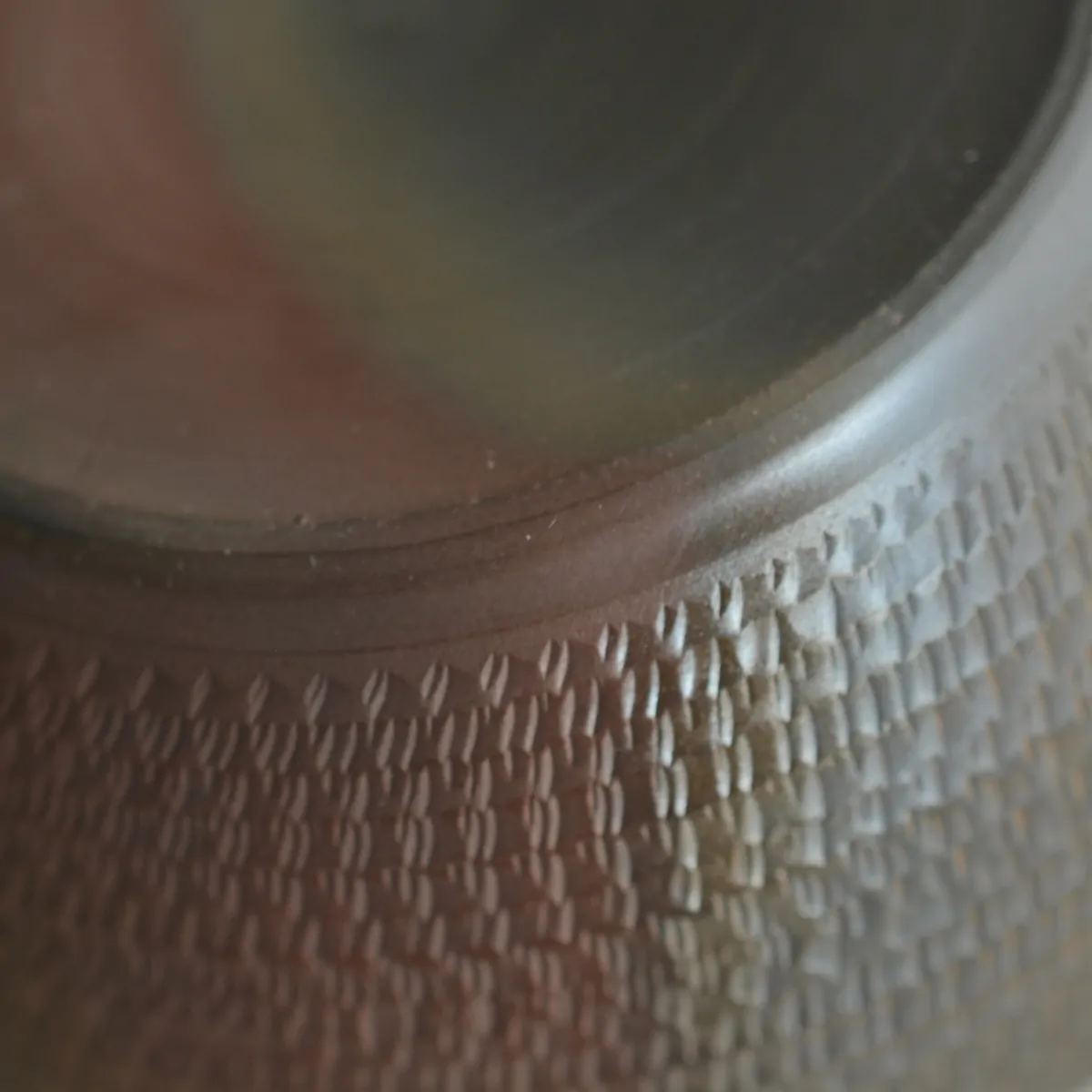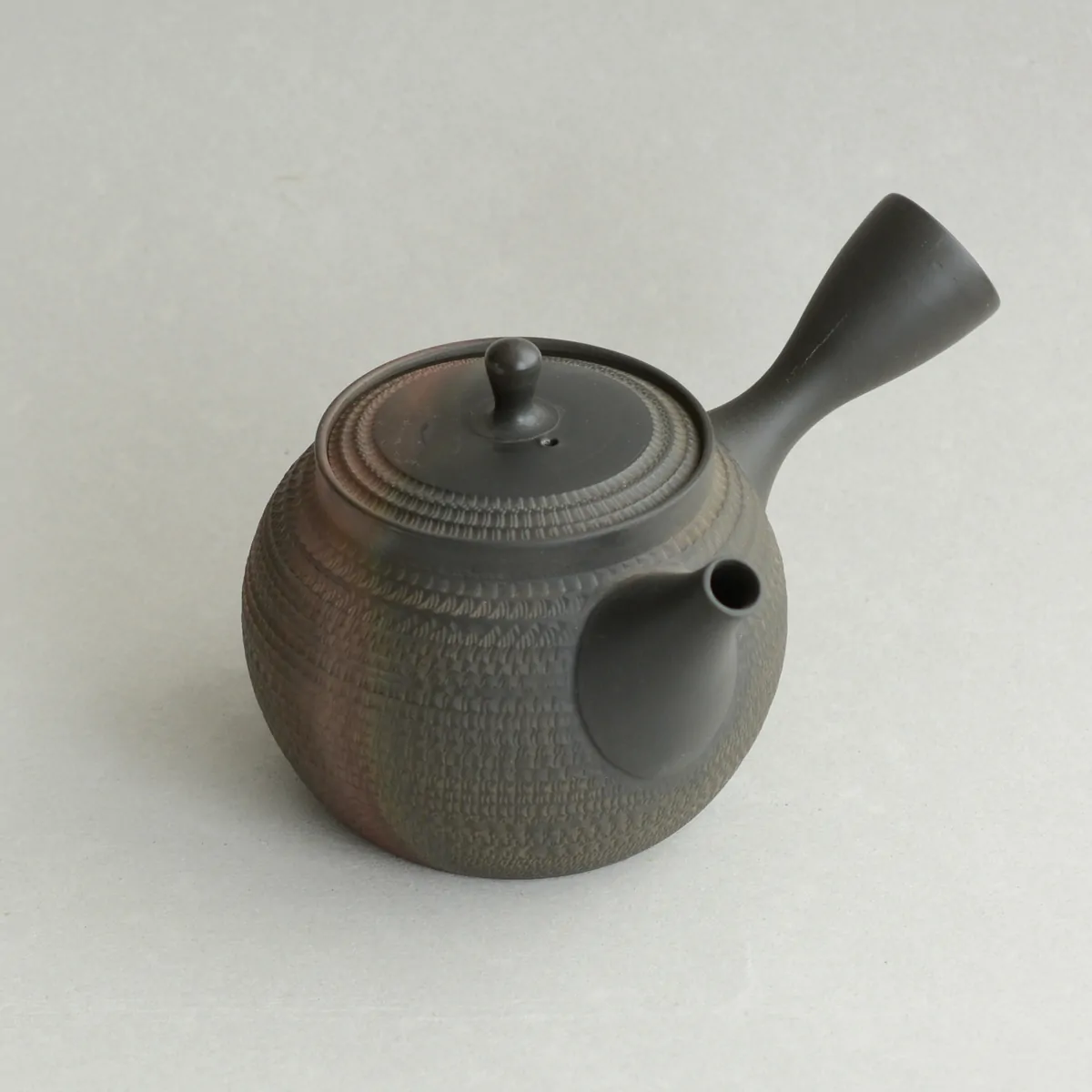 The "biri" is achieved by a small blade that cuts pattern into the surface while wheeling. The teapot also has yōhen finish. Yōhen in Japanese means "changed by the flame". When the teapot is fired, the heat fluctuates in the kiln, which results in color changes on the surface. This makes every piece unique with the impression of randomness, which has both aesthetic and philosophical appeal to the Japanese.