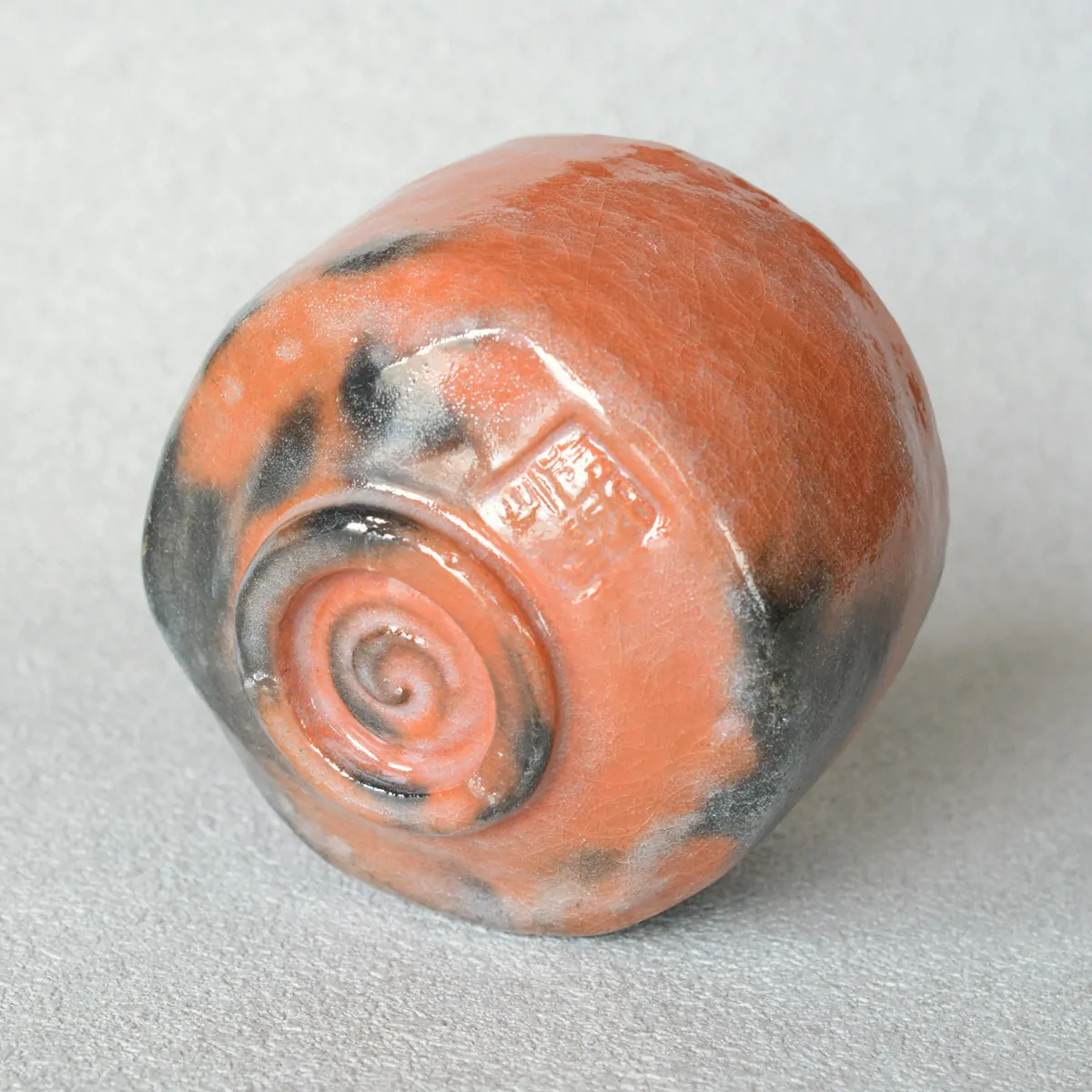 The tea bowl is the replica of the historical "Rinzai" chawan, originally made by Chōjirō, the founder of Raku pottery. Among Chōjirō's tea bowls, Sen no Rikyū named seven (3 Kuroraku and four Akaraku) which he believed were "meisaku", a masterpiece. Rinzai was one of the four Akaraku masterpieces.