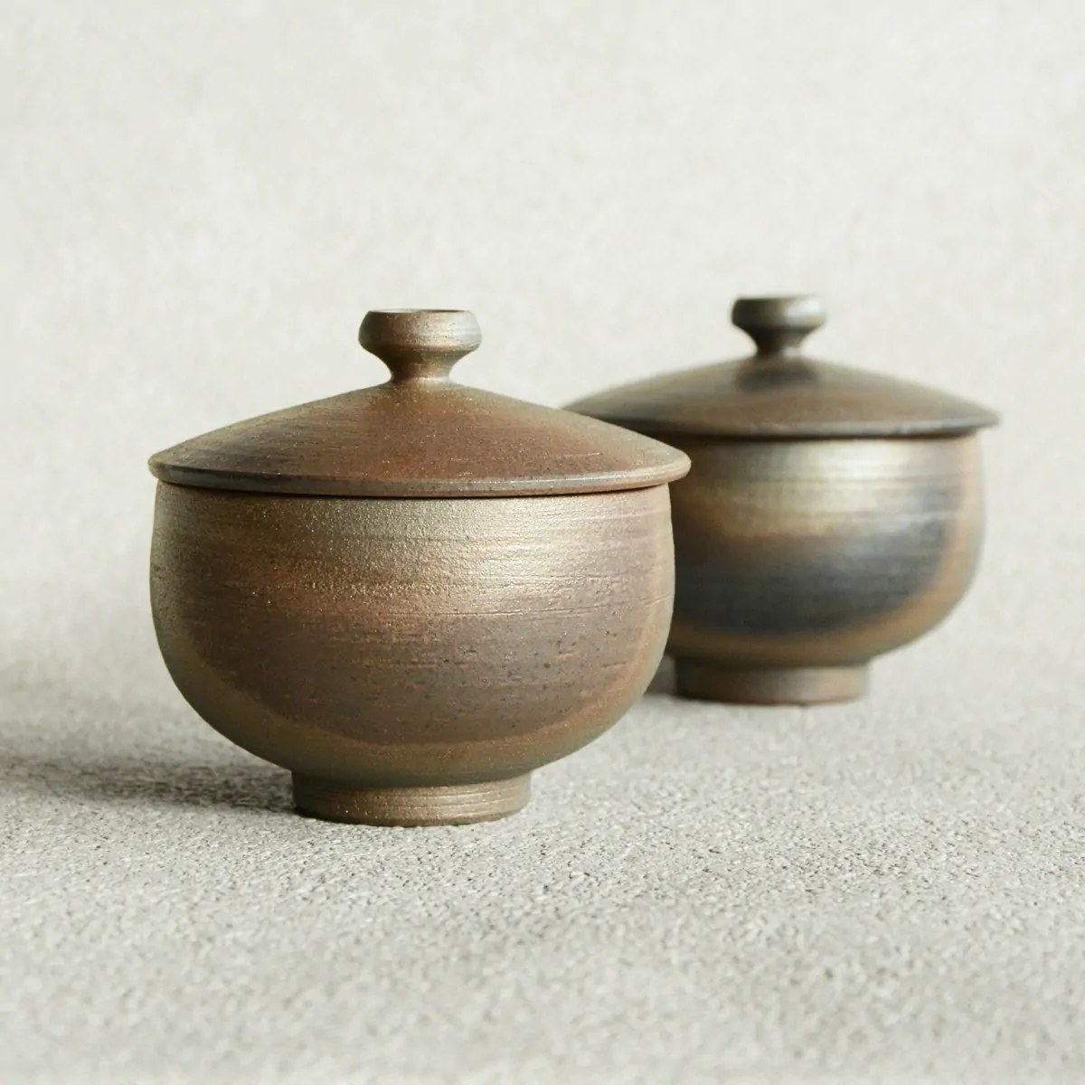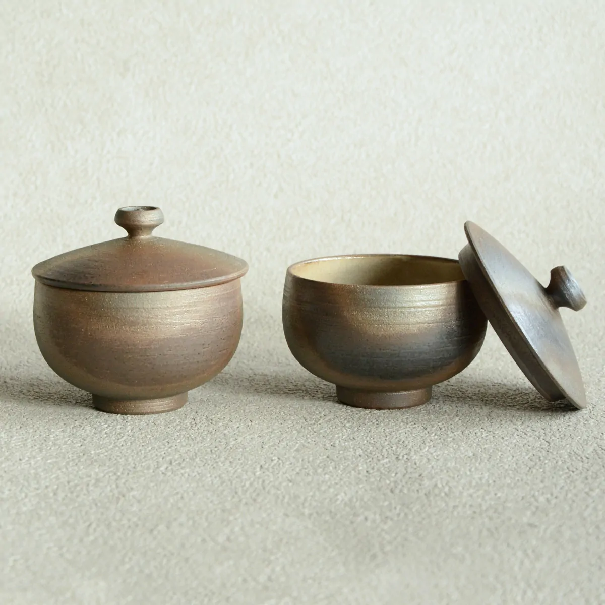 The teacup has a yōhen finish. Yōhen in Japanese means "changed by the flame". When the cup is fired, the heat fluctuates in the kiln, which results in color changes on the surface. This makes every piece unique with the impression of randomness, which has both aesthetic and philosophical appeal to the Japanese.