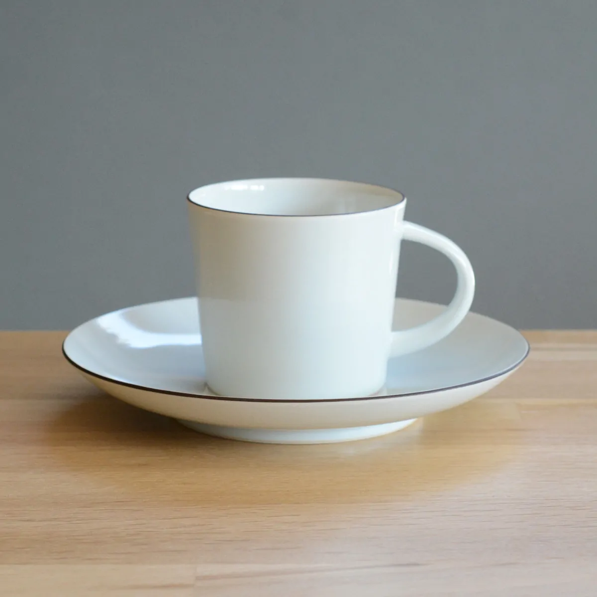 White porcelain mug and saucer by Kawai Masamitsu