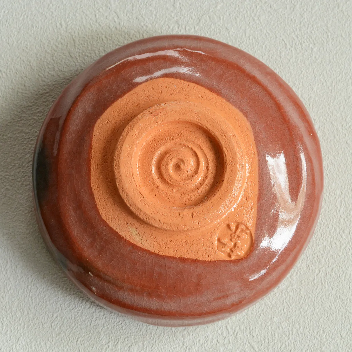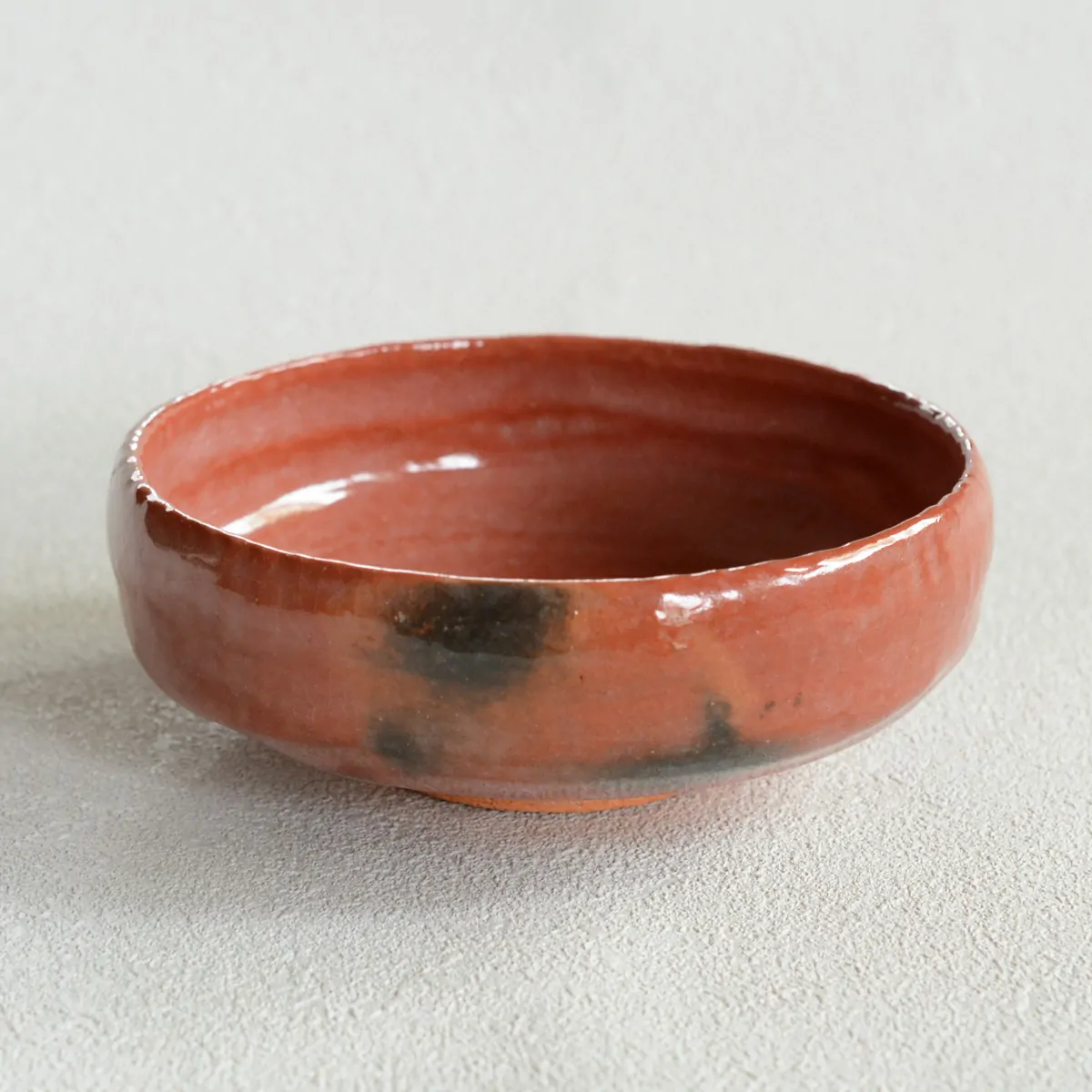 Red raku matcha tea bowl from the Shōraku Kiln