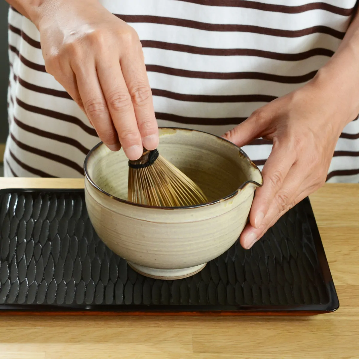 Large ceramic pitcher, ideal for both loose tea brews and preparing matcha latte.