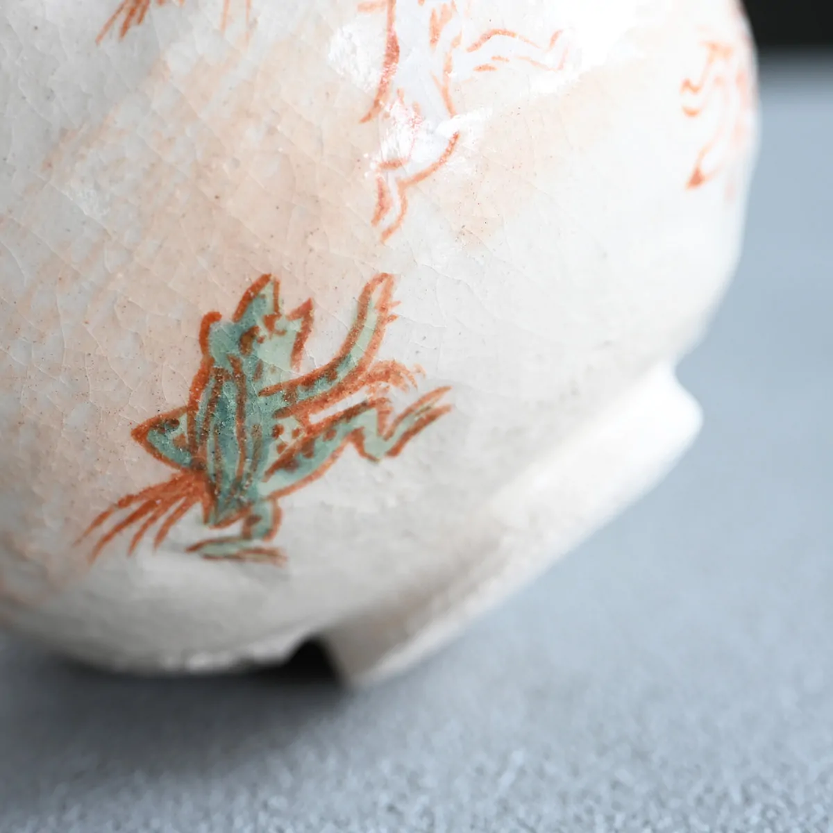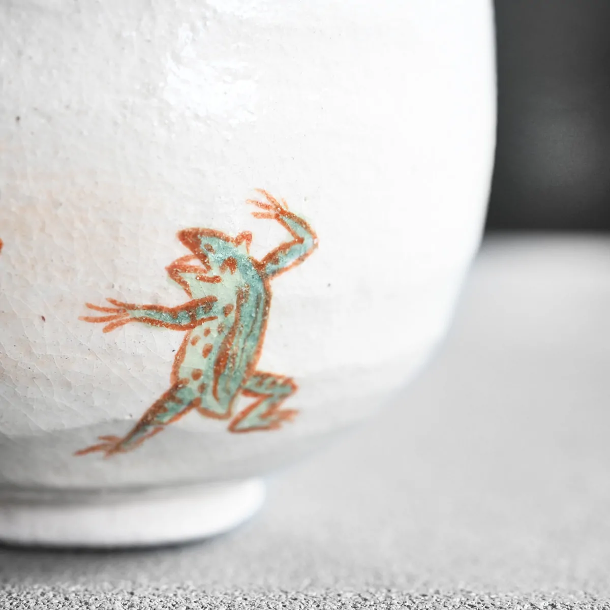 An absolutely beautiful piece of work that fits in perfectly with the current summer and warm weather. Even though I am very far away from Japan, I organise my own little tea ceremonies for myself which help me to relax and get into the mood thanks to the matcha.This is my second tea bowl ever and the first with Rakunyū kiln. Fantastic workmanship and a pleasure for the eyes. The drawing on the chawan is from the "Chōjū-Giga", the oldest remaining Japanese manga. I recommend reading through all the scrolls and available material to get a little more insight into the history of this manga work. You can feel the professionalism, tradition and passion put into it while holding this tea bowl in hands.