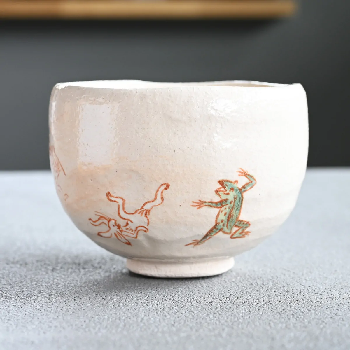 The drawing on the chawan is from the "Chōjū-Giga", the oldest remaining Japanese manga.