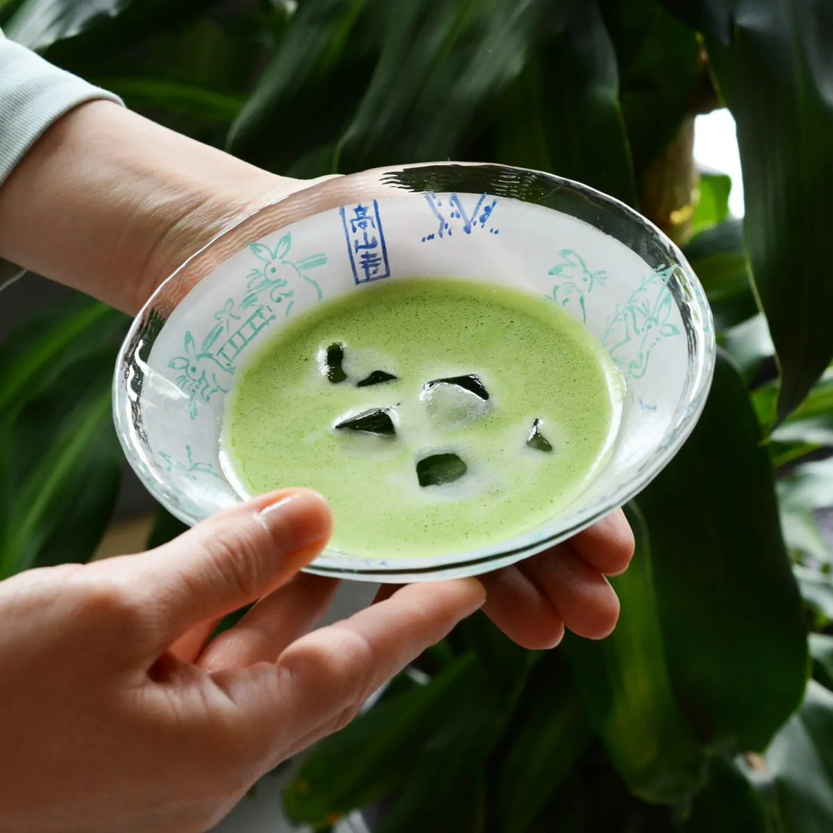 Enjoy the delicious taste of fresh matcha with the cool sense of this hand-made glass tea bowl.