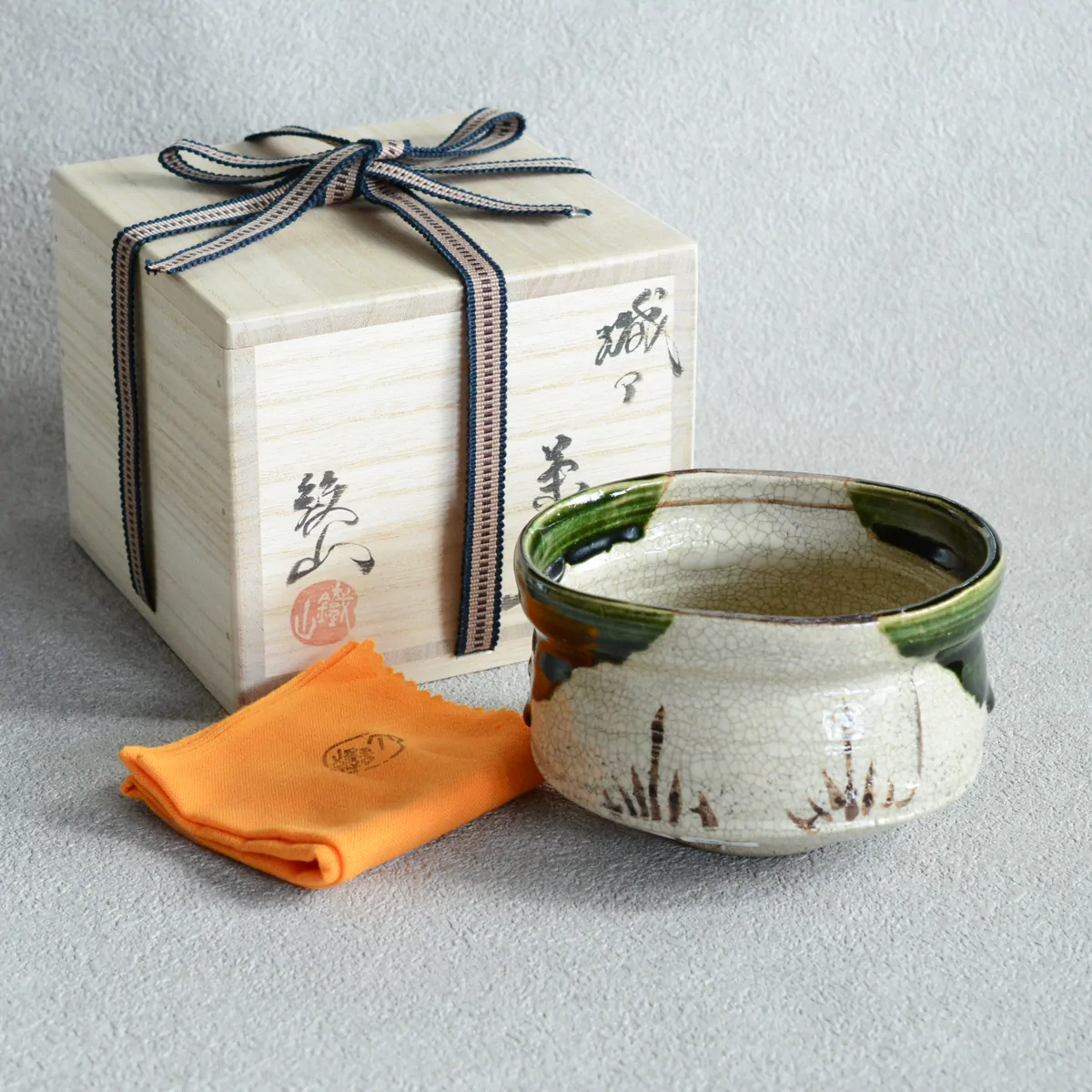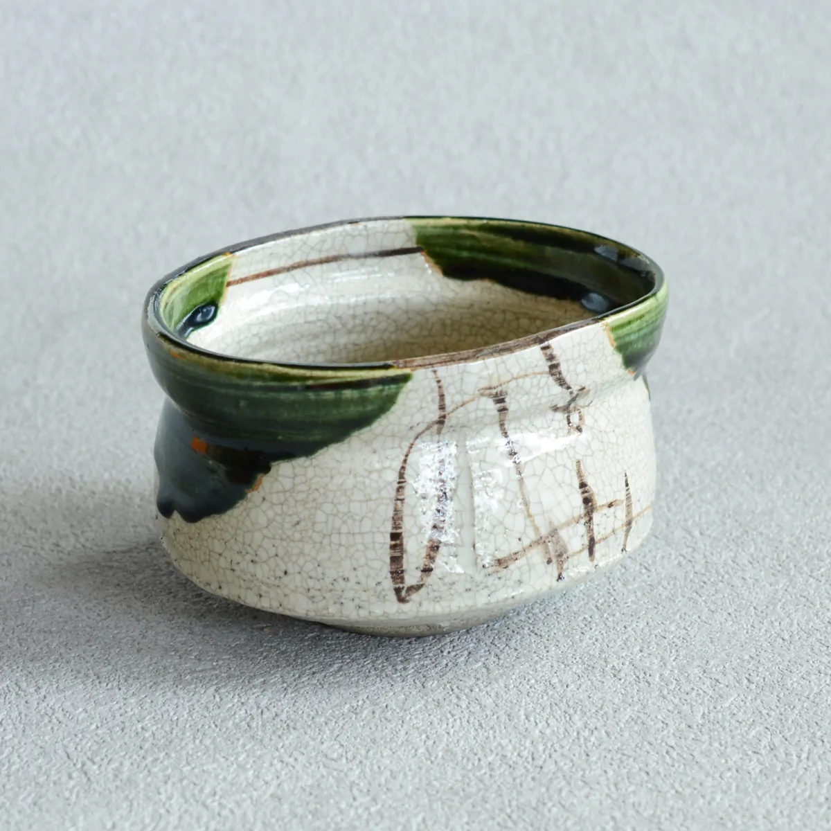 Handmade Setoyaki oribe tea bowl from Matsumoto Tetsuzan