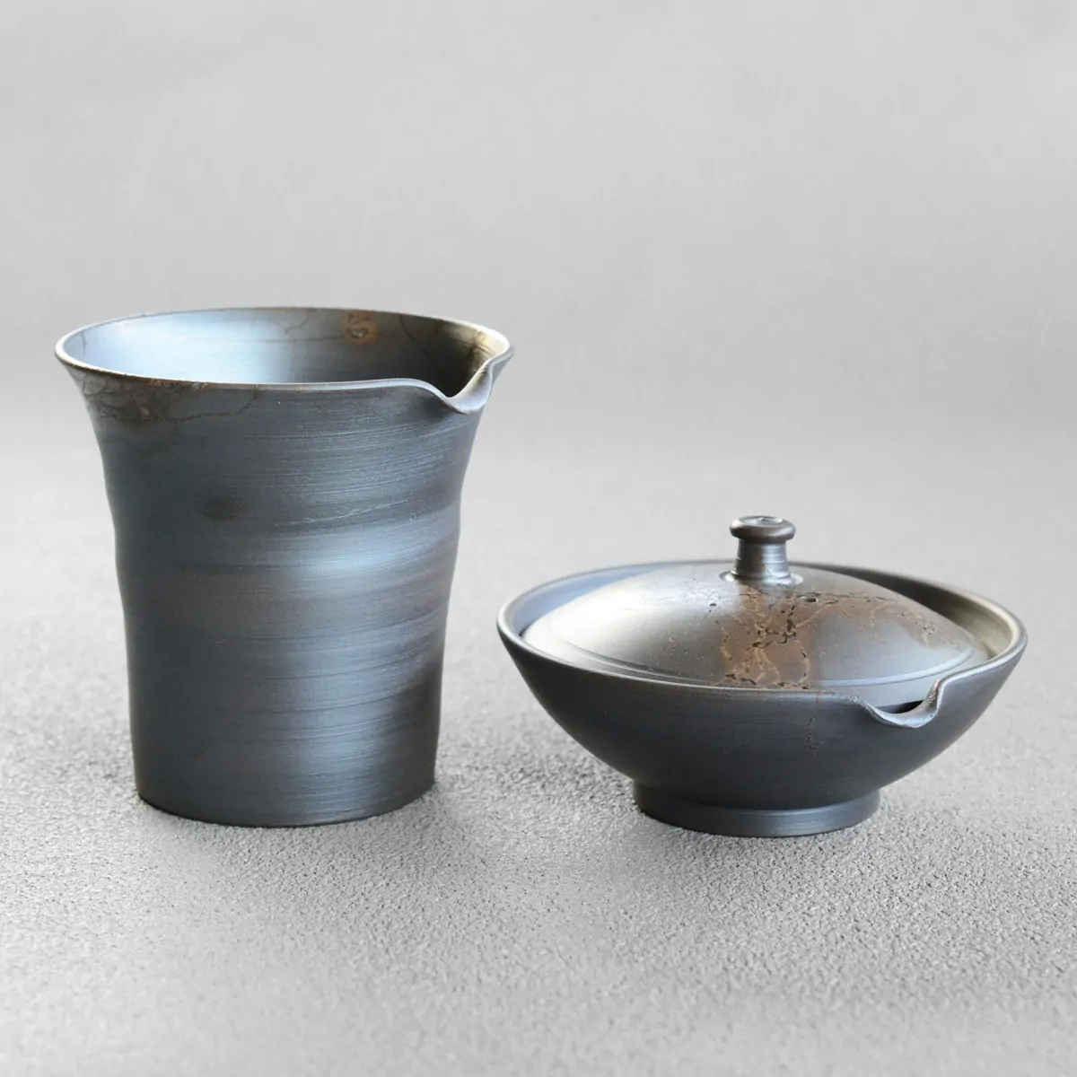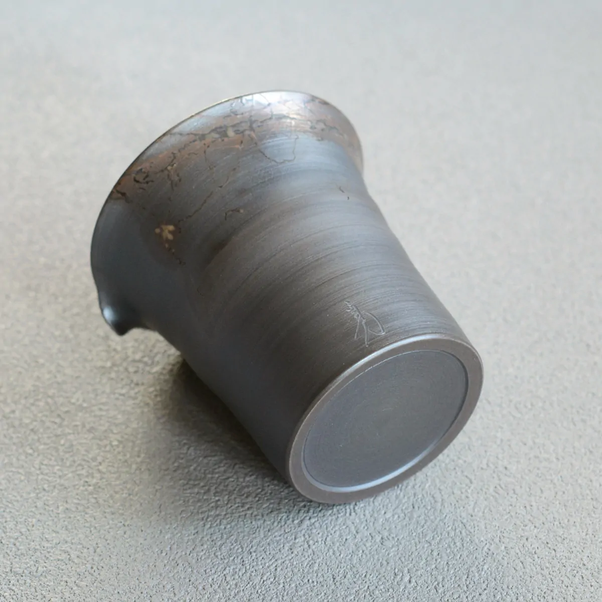 The pitcher was fired in reduction chamber. The pattern on the surface is achieved with "Mogake technique" developed back in the 19th century. The pot was wrapped with Amamo seaweed, which reacts with the clay and oxidizes during firing. The result is this unique finish, bearing the impression of randomness, which has both aesthetic and philosophical appeal to the Japanese.