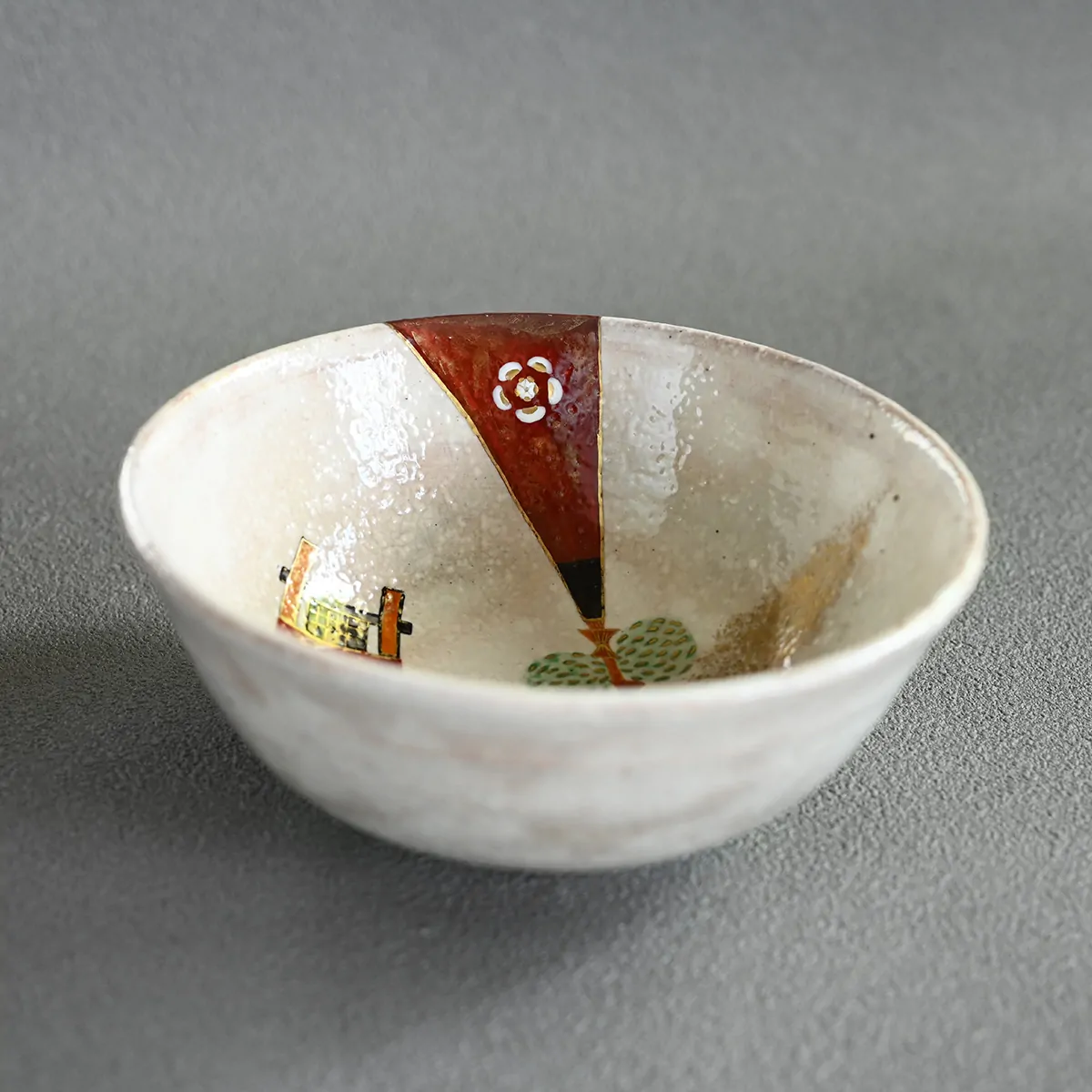 Handmade and hand-painted Kiyomizu matcha tea bowl decorated with Gion yamahoko float by Ryoji Nakamura.
