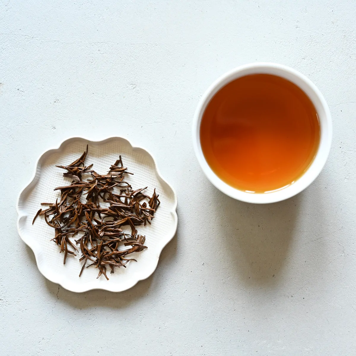 The tea has a toasty aroma with hints of prune jam and apricot, and the first brew delivers these exact notes from your nose to your palate. It is a delicious mix of prune and apricot, with a sweet honey flavor that lingers, much like you would find in the finest black teas. In the second brew, the sweetness softens, quince notes add a touch of depth while letting the mildly tart black tea aroma shine through. Perfect for those who appreciate a well-balanced, flavorful premium Chinese black teas!