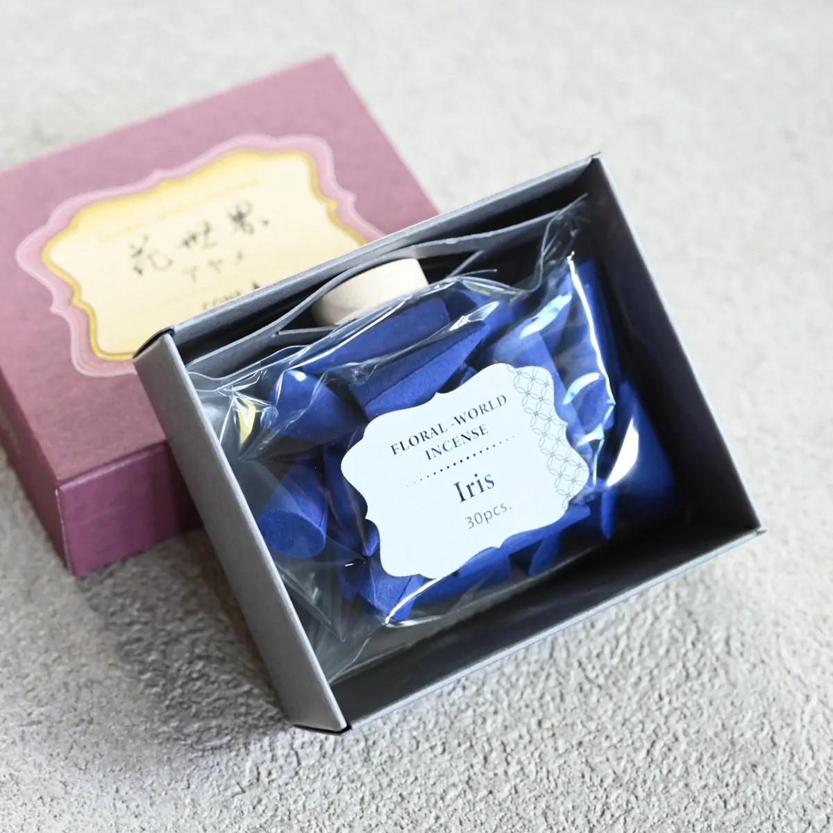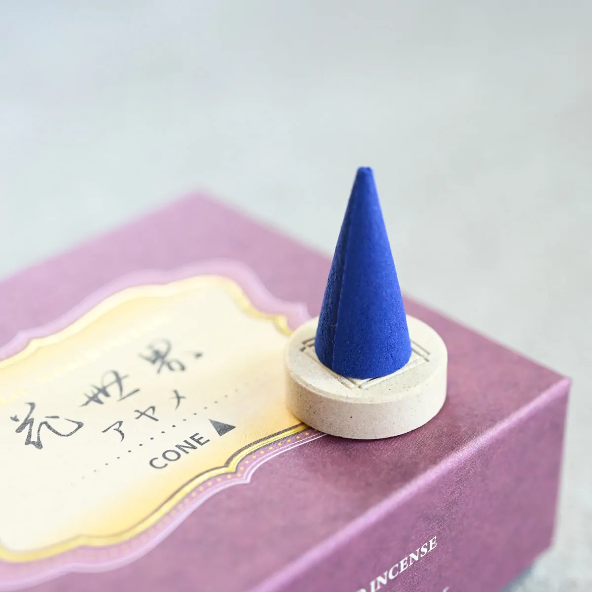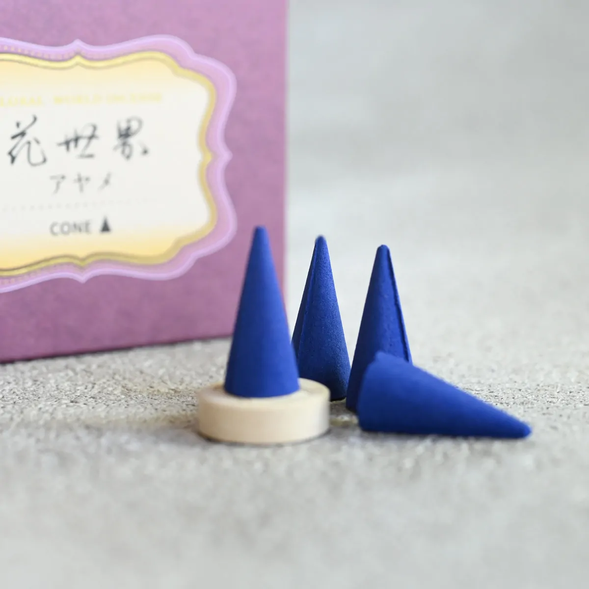Iris-scented cone-type incense for both traditional and modern Japanese incense burners.