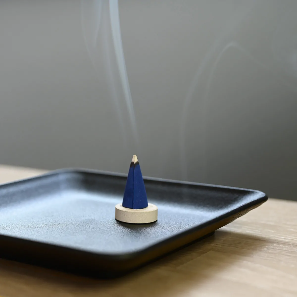 Place the cone on the ceramic cone holder and put them into your incense burner or a fire-proof plate. Light the tip of the cone and let it burn away completely.