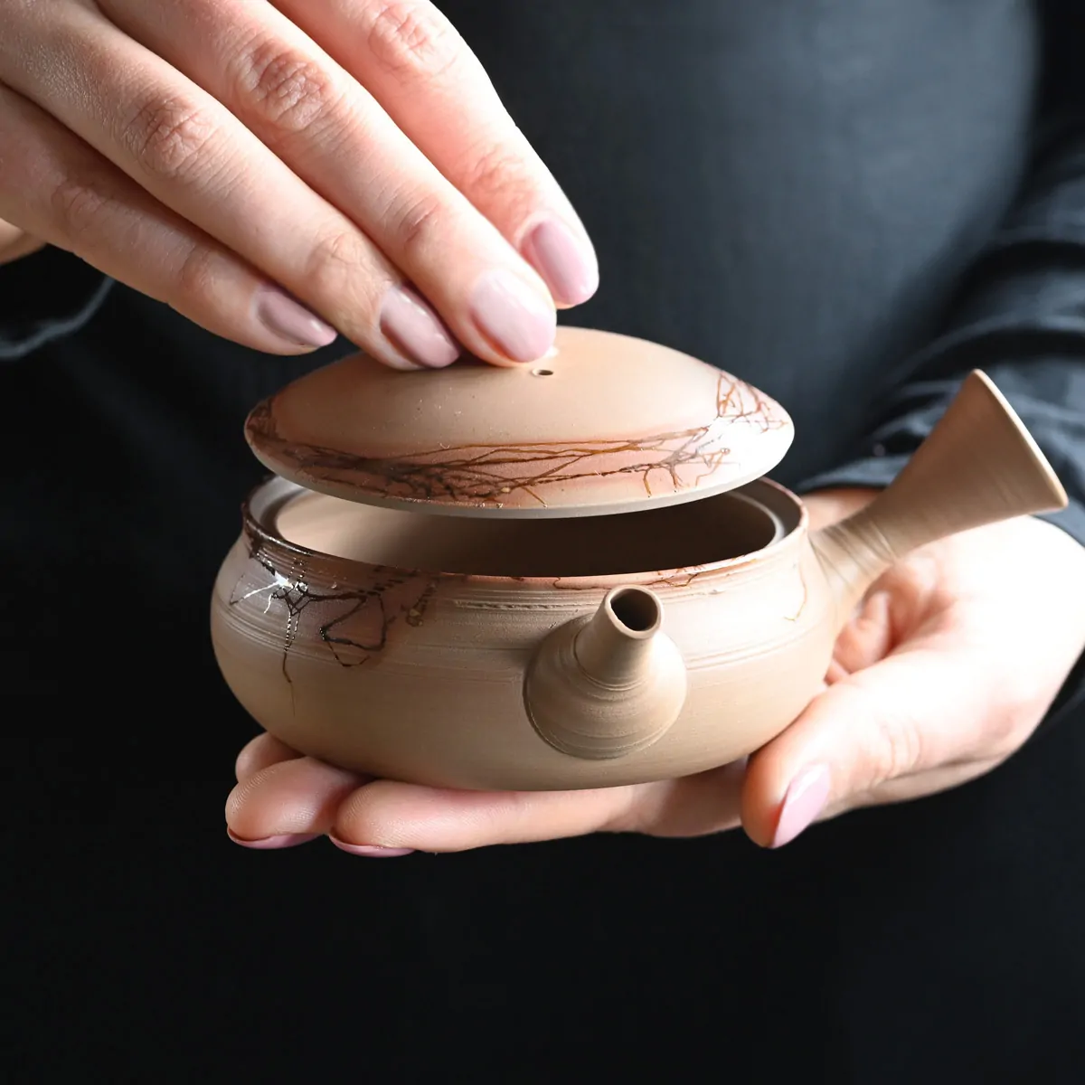Handmade Tokoname side-handled teapot from Yamada Yūtarō