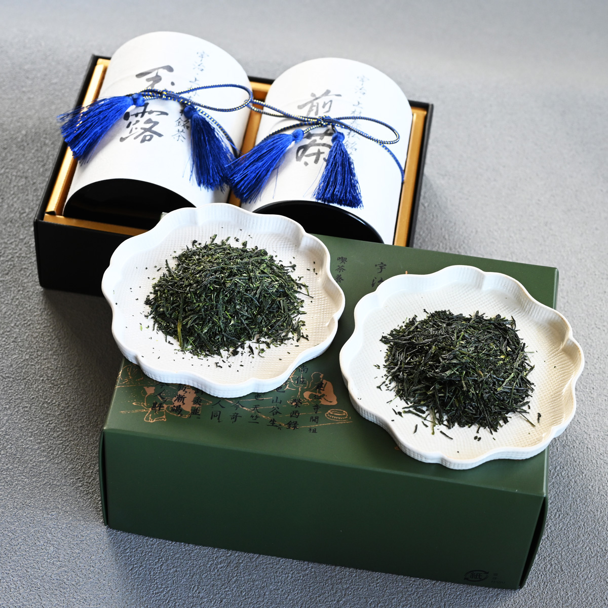 An elegant and exquisite gift set including Gyokuro Kyohomare and Sencha Kyoishiki in stylish tea caddies.