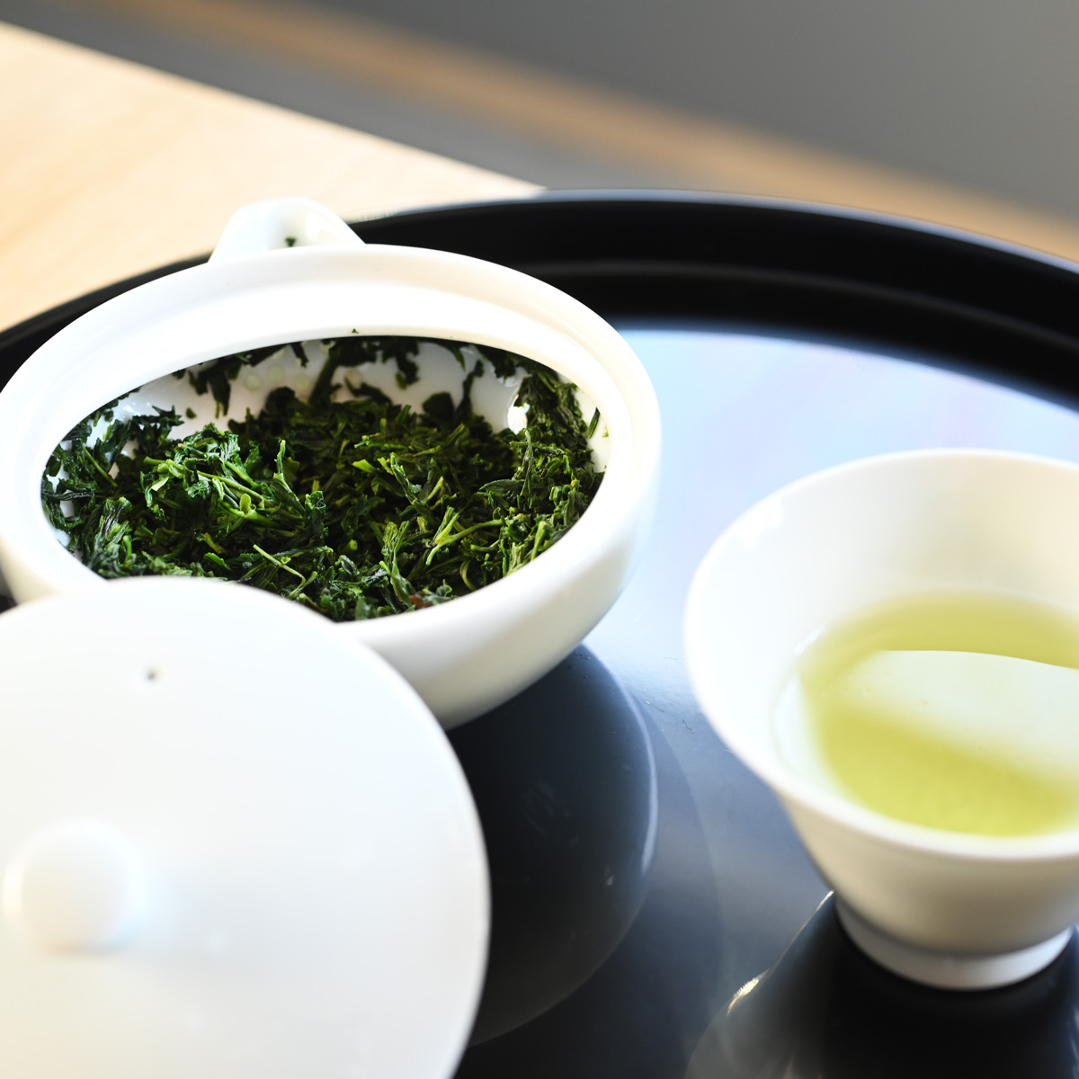 The tea goes three delicious steeps. For the first brew, use 60 ml (2 fl oz) 40℃ (104°F) water and steep for about 2 minutes. For the next two brews, shorten the steeping time to 1 minute but do not use much hotter water. Water at 45℃ brings out the sweetness and flavor of the gyokuro without releasing much bitterness.