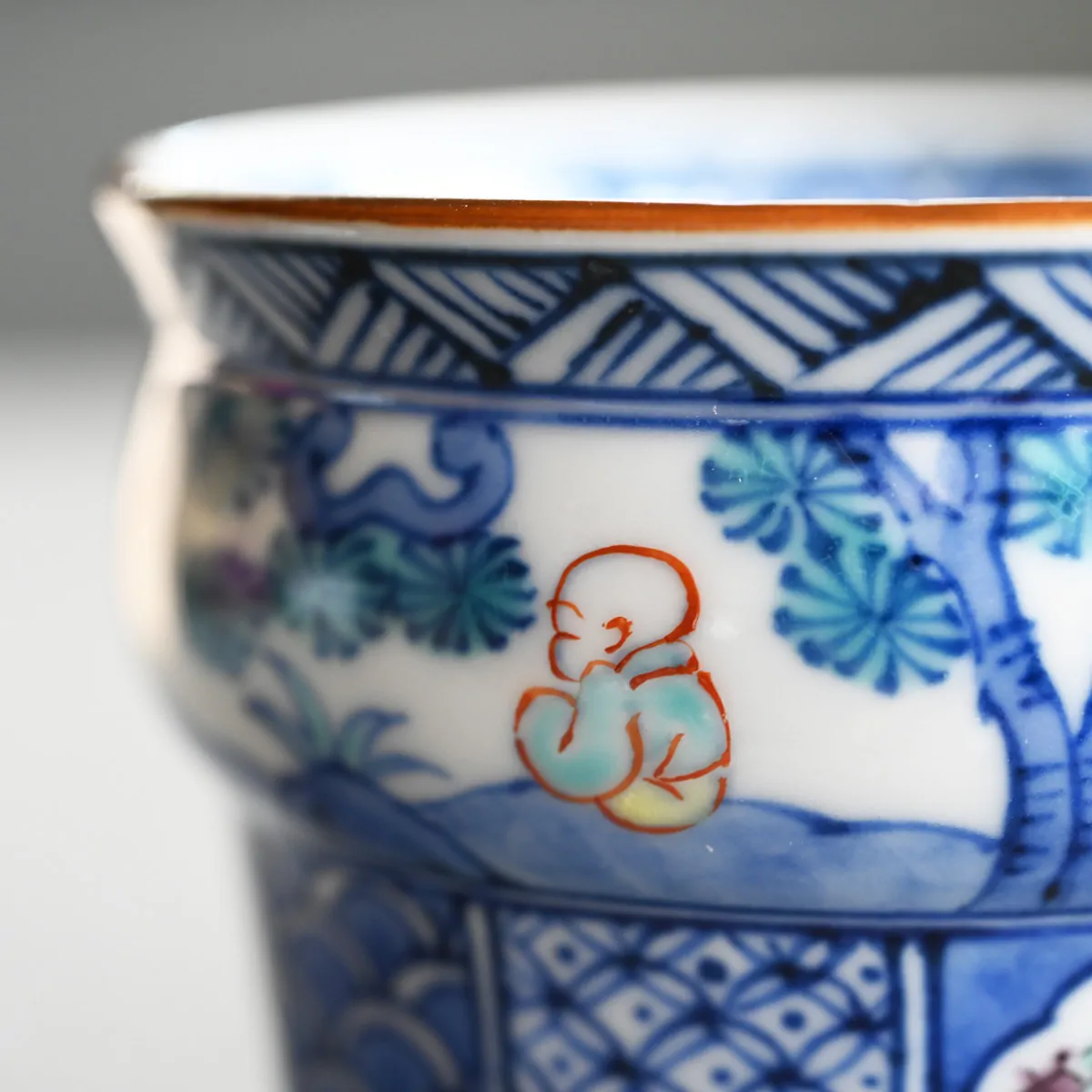 The teacup features scenes of playful children, a motif rooted in Chinese symbolism. During the Ming Dynasty - a time marked by war and invasions from outside tribes - constant conflict led to a significant drop in the population. As a result, children came to be deeply cherished. The term karako, meaning "Tang child," became a symbol of innocence and good fortune, and images of children grew popular as hopeful, lucky motifs.