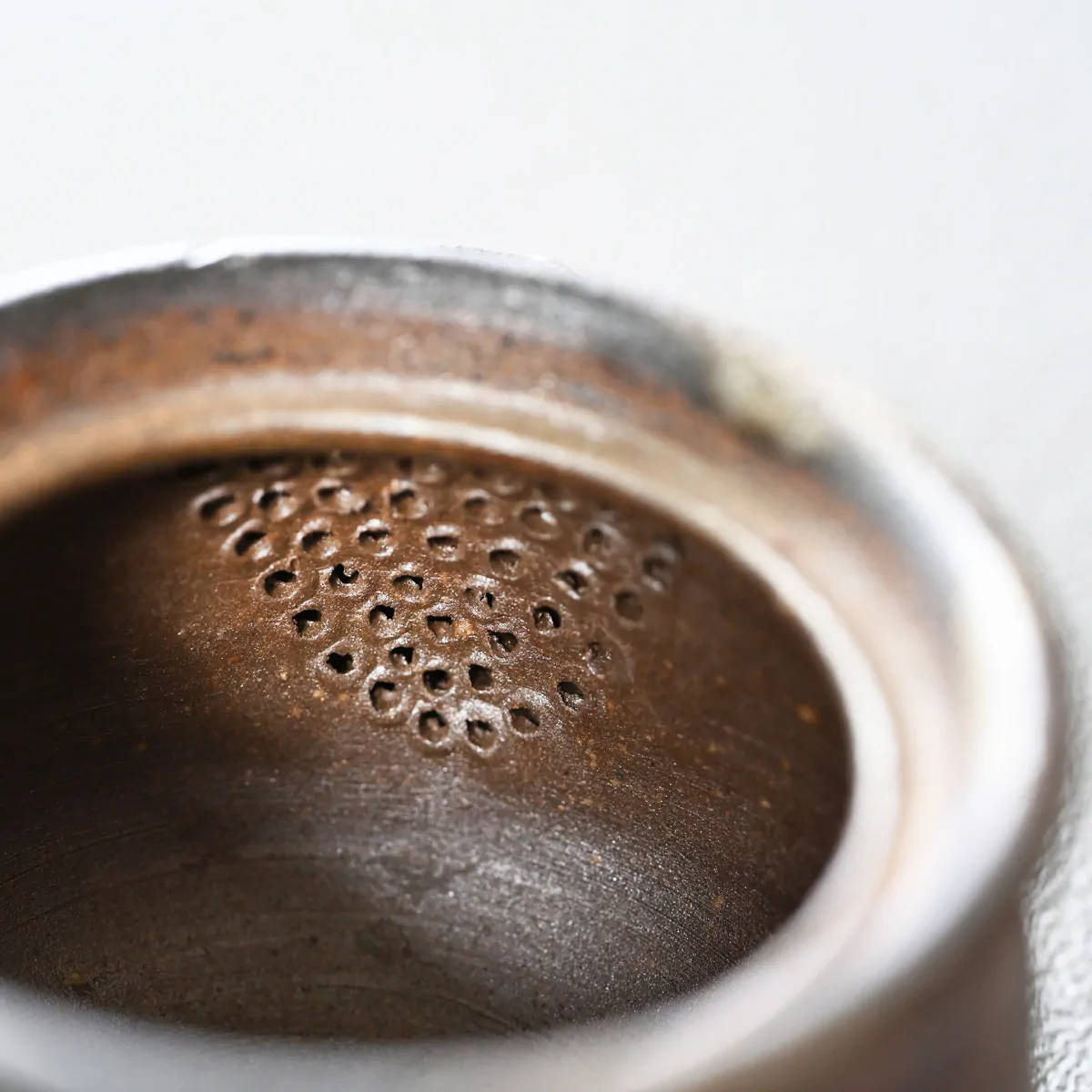 Handleless teapot from master Miyoshi Mitsuru. The teapot has a precise and fast pour, and is ideal for Japanese green teas. The tall brim makes it easy to hold, even when brewing hot tea, as the top part does not get hot.