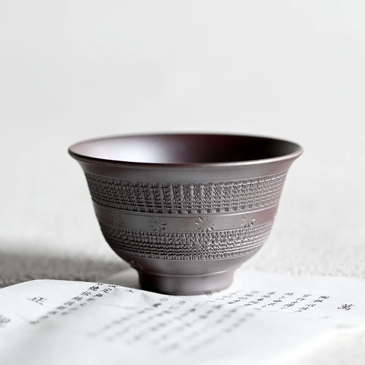 The “shidei” teaware is one of the hallmarks of Banko-yaki. It is made of red Banko clay, which is exceptionally rich in iron. When the clay is fired in a reduction chamber, the heated iron particles turn the color of the clay from deep red to purplish-brown: the signature color of Banko ware. They say the more the teaware is used, the more beautiful and lustrous it becomes. The unglazed purple clay reacts with the tannic acid in the tea, smoothing away the bitterness.