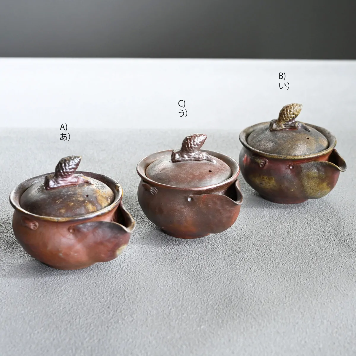 Handleless teapot from Bizen. The pour is fast and precise, and the teapot is ideal for Japanese green teas. Thanks to the small ears on both sides, it is easy to hold even when brewing hot tea.