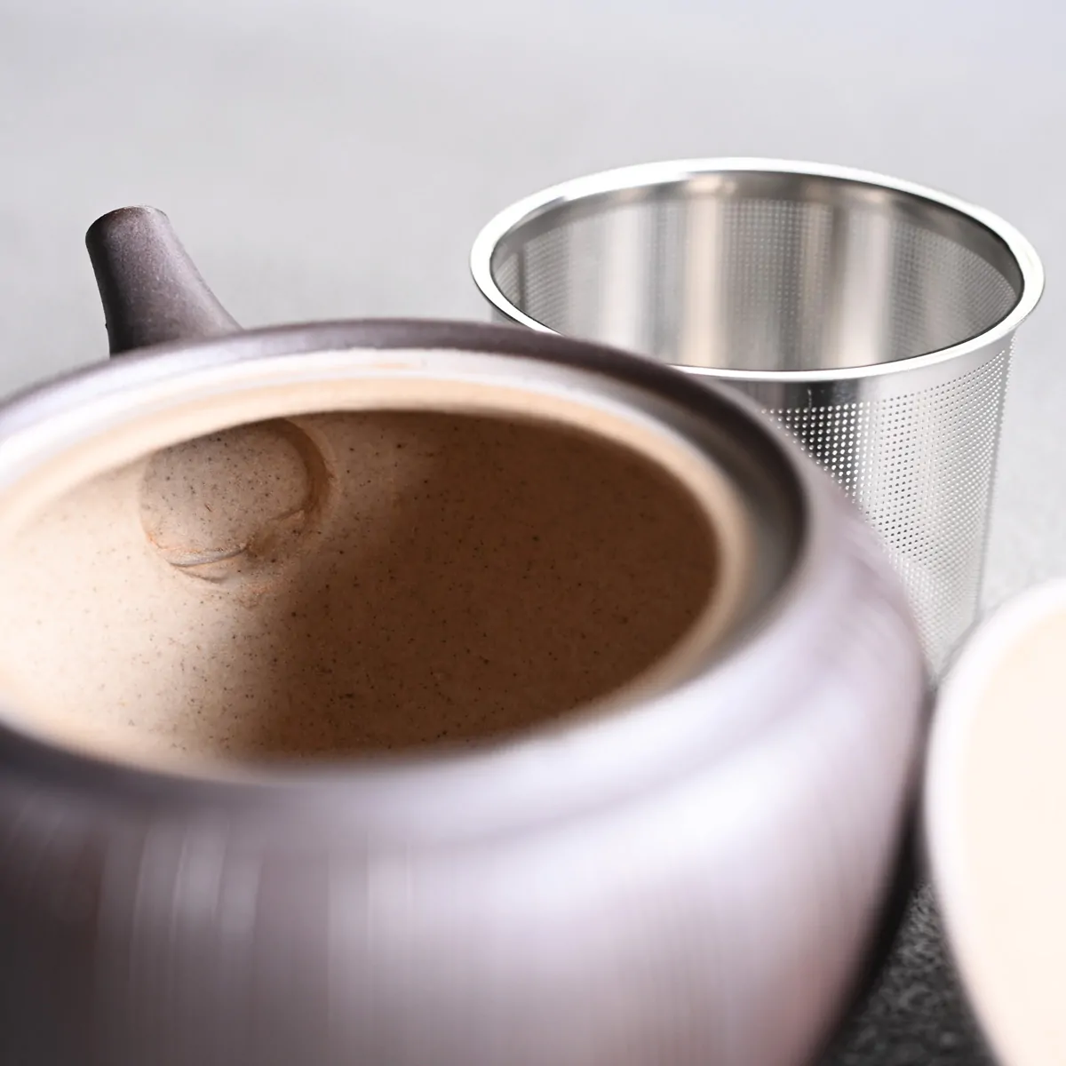 Unglazed Tokoname teapot with a removable metal strainer