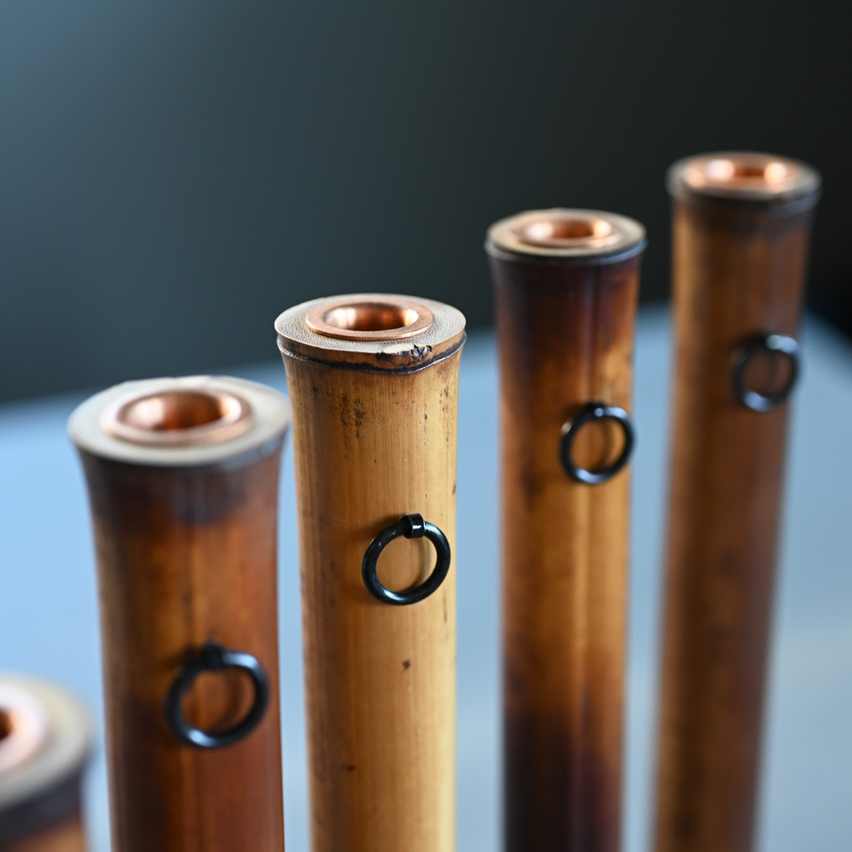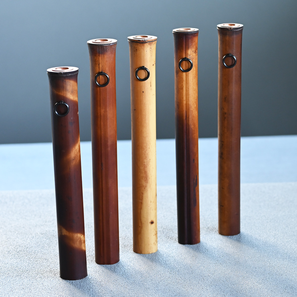 Smoked for over a century by hearth soot in thatched-roof homes, genuine soot bamboo takes on a rich brown or amber hue. Now rare, it’s a precious material.