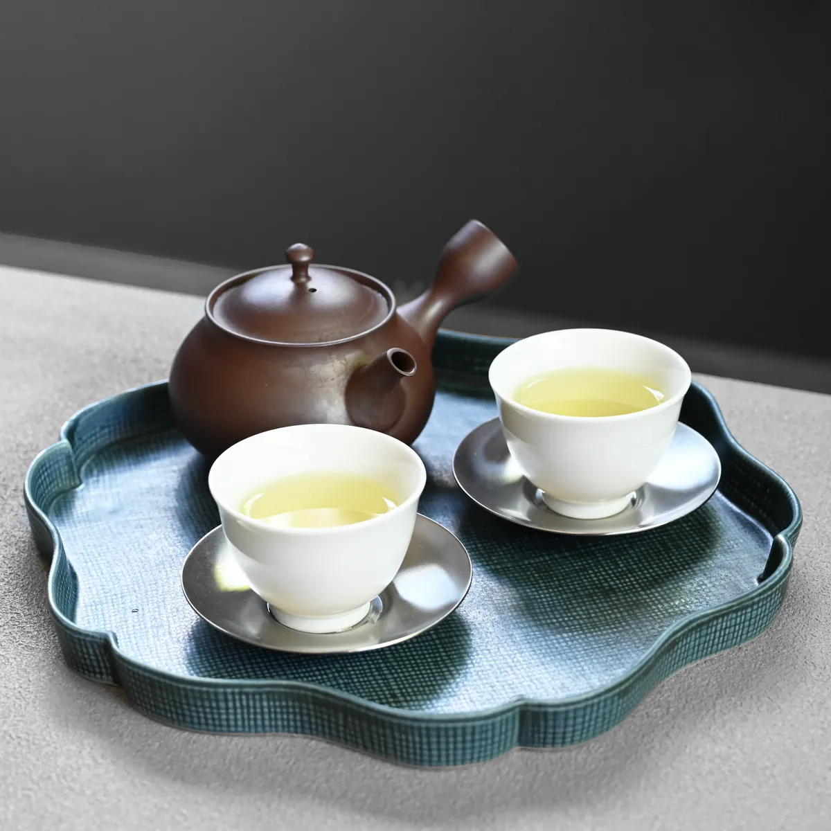 Multifunctional ceramic plate designed for both serving and tea rituals. Use it to present sweets or as a tray for your teaware. Its raised, stilted walls also allow it to function as a tea boat—perfect for Chinese tea practice—letting you pour hot water over your pot to maintain warmth while adding an elegant touch to your tea experience.