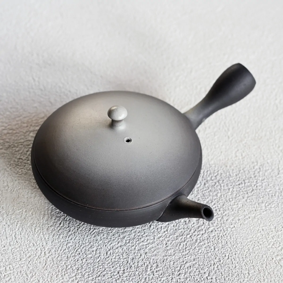 Junzō Maekawa's artwork. Thanks to its flat and wide shape, this teapot is particularly suitable for premium quality teas, because as they have larger space to open, the leaves graze each other less, releasing less catechin, thus revealing the tea's true sweetness and gentle elegance.