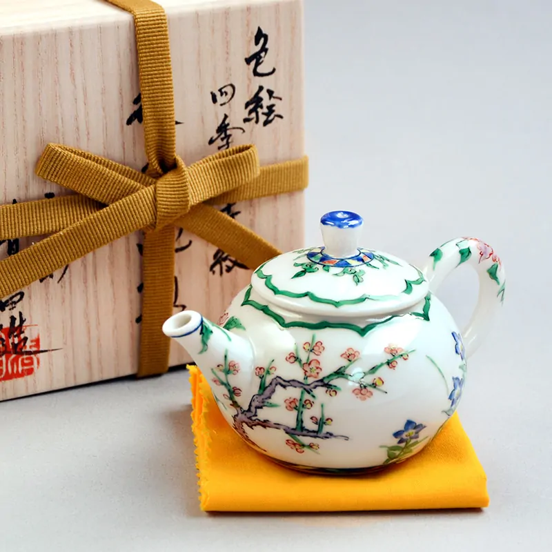 Porcelain teapot decorated with four seasons flowers • 140 ml