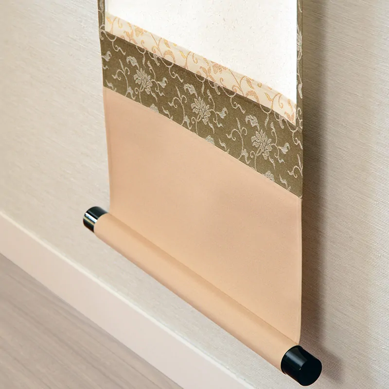 The hanging scroll is made of fine fabrics and paper. Always handle it carefully with clean hands.