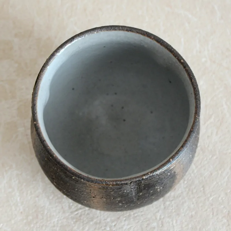 A very rustic looking and feeling cup. Mine has a nice faint blue/gray undertone on the outside. Heavy in the hand. What I like very much is because the inside is light blue and the wide open shape lets more light in than narrower/smaller cups, you can really see the light green tint of the tea.