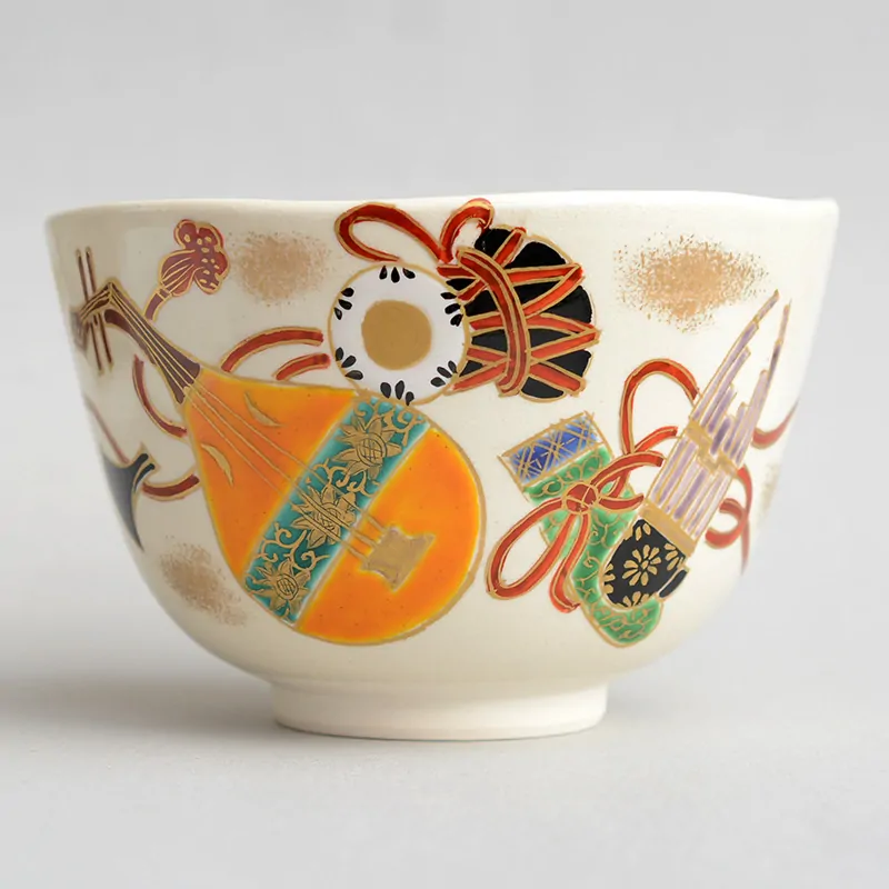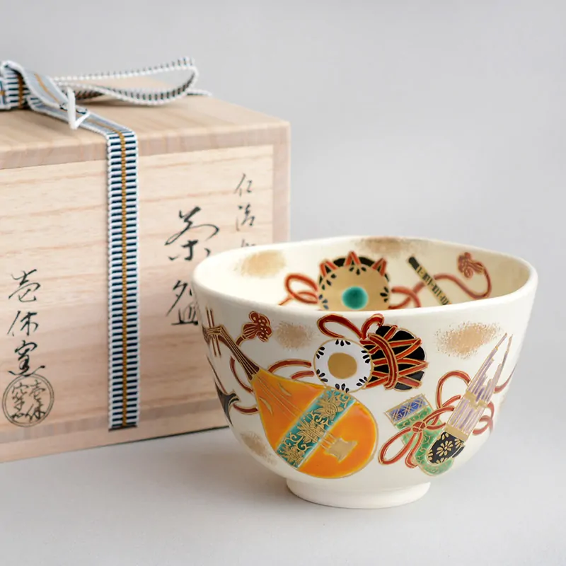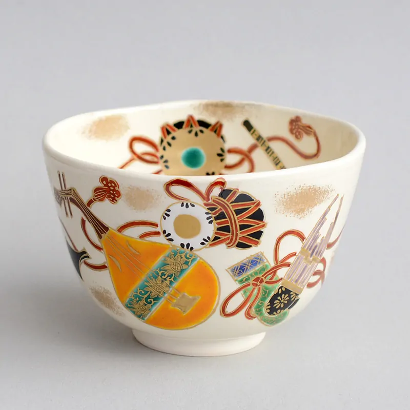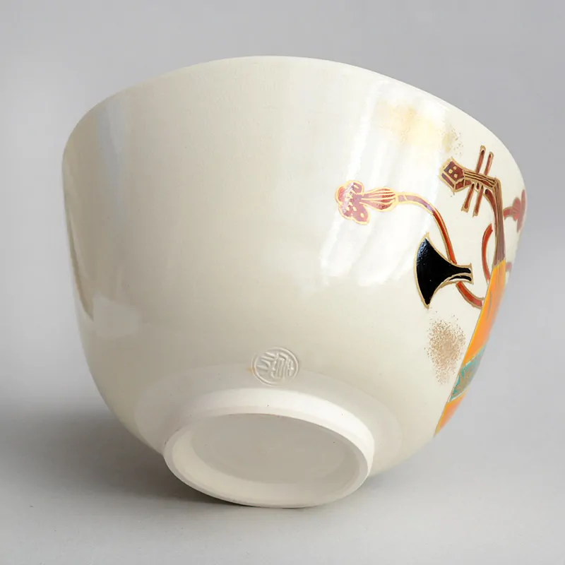 Handmade and hand-painted matcha tea bowl from the Ikkyu kiln.