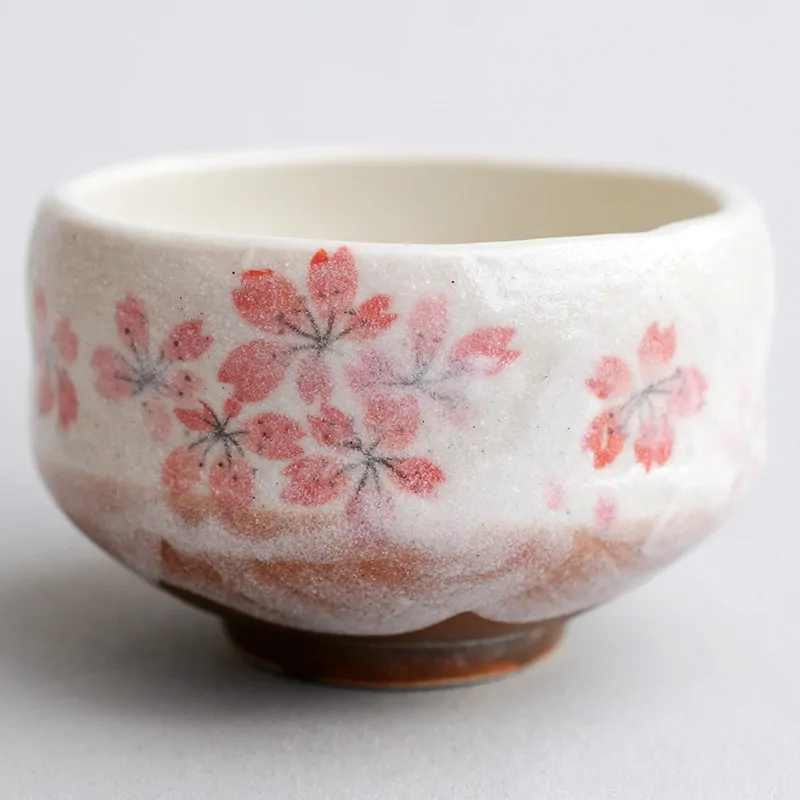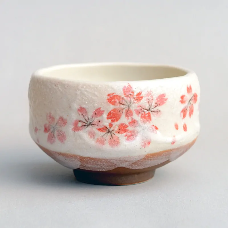 Small matcha tea bowl decorated with Japanese Cherry Flowers