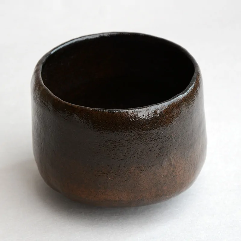 Brown matcha tea bowl by Shōraku