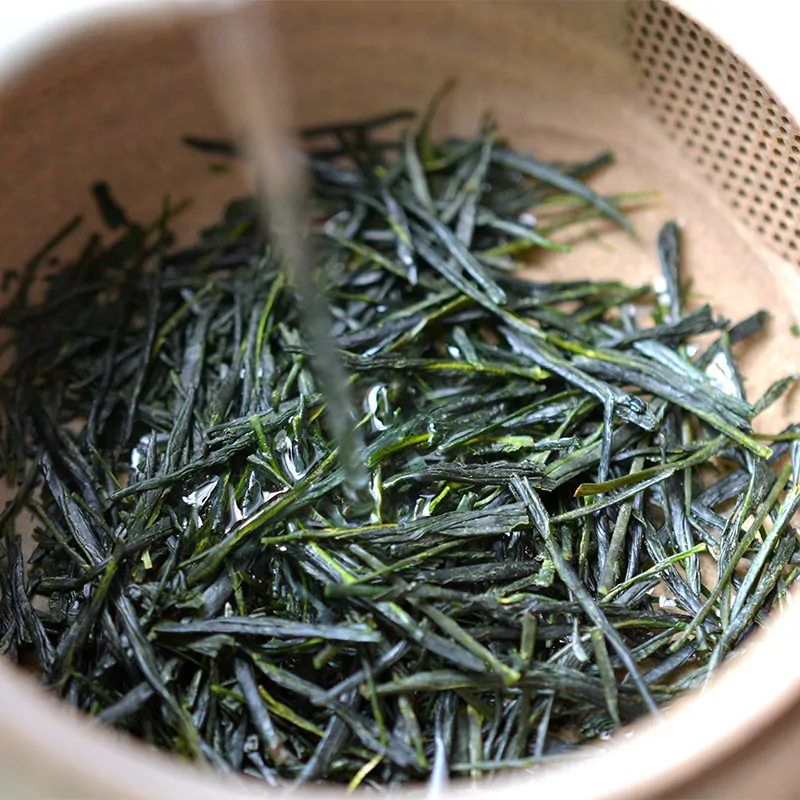 After the tea leaves are picked, they are only steamed for 20 seconds, and then dried at 80℃ for 30 minutes. This short and gentle processing helps the leaves keeping their lush freshness.