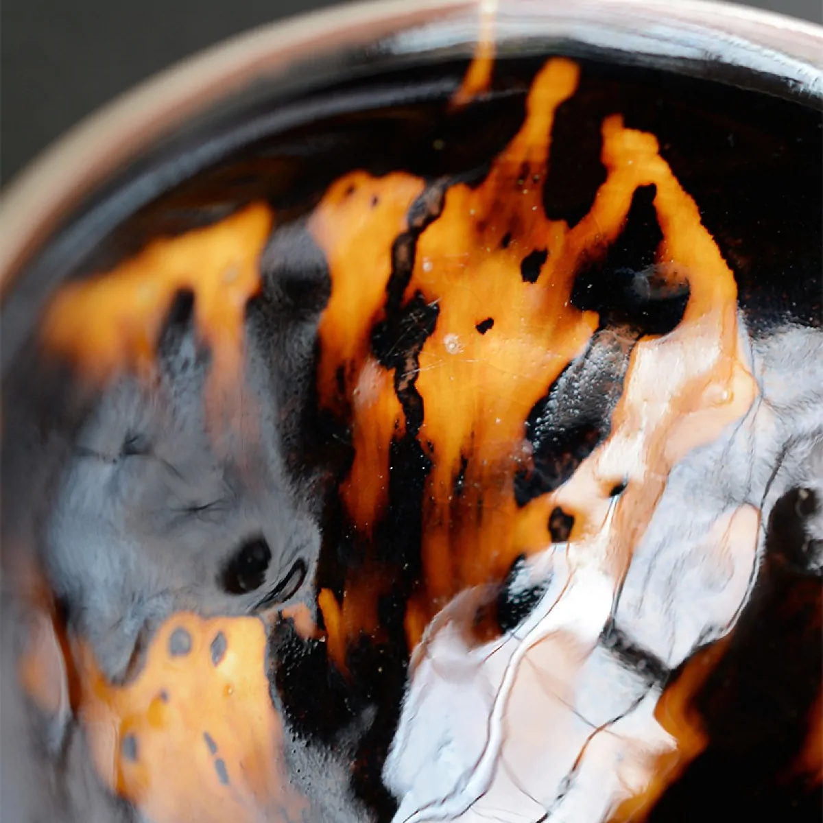 This tea bowl is a replica of the famous tenmoku chawan made in the Chinese Ji Zhou kiln in the Southern Song dynasty.