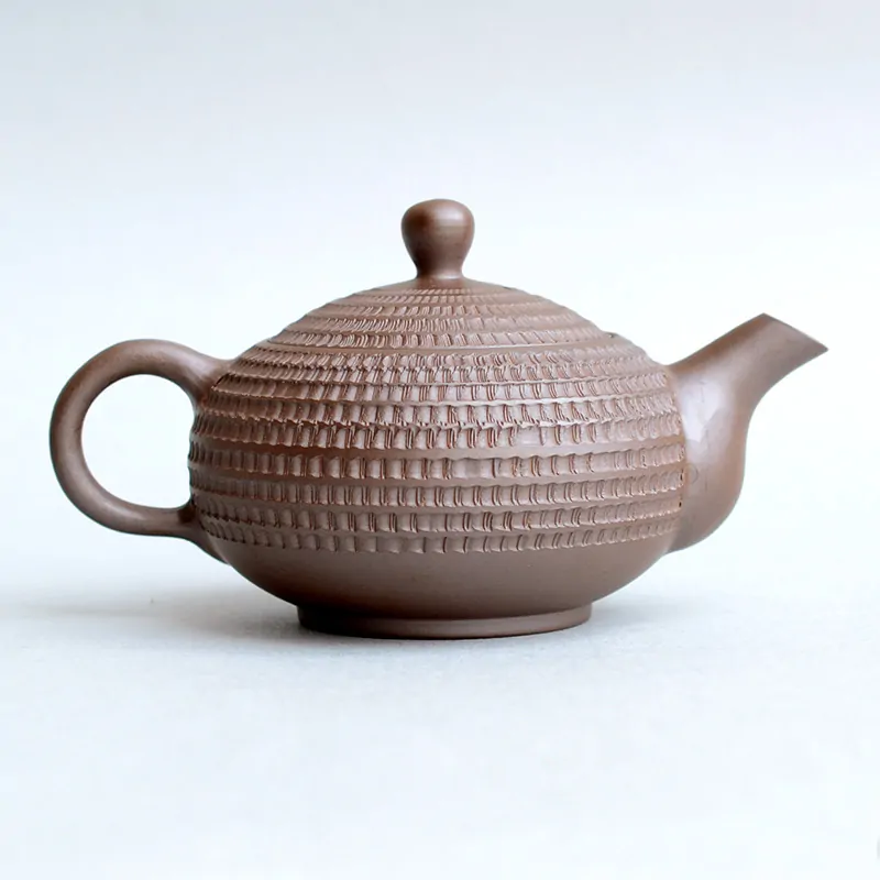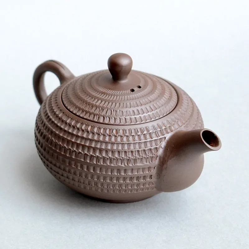 The “shidei” teapot is one of the hallmarks of Banko-yaki. It is made of red Banko clay, which is exceptionally rich in iron. When the clay is fired in reduction chamber, the heated iron particles turn the color of the clay from deep red to purplish-brown: the signature color of Banko ware. They say the more the teapot is used, the more beautiful and lustrous it becomes. The unglazed purple clay reacts with the tannic acid in the tea, smoothing away the bitterness.