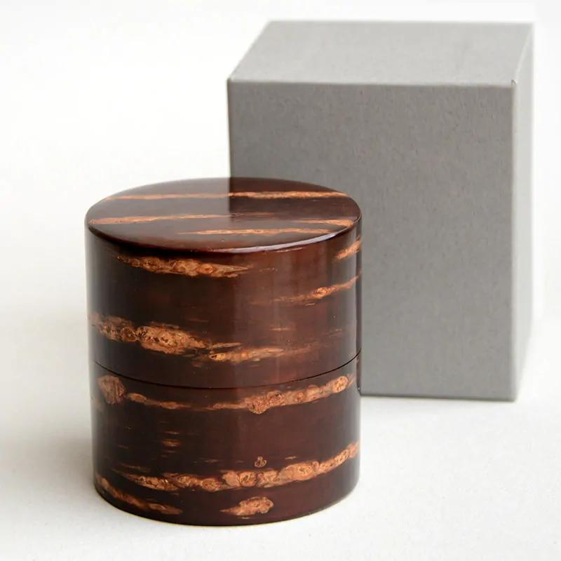 Beautiful natsume, the craftsmanship is amazing, and it has me gazing at it, enjoying the beautiful shimmer of the bark. The lid fits so perfectly and there seems to be no errors as it satisfyingly slides on. For those who do not know, this is a tool that is used in tea ceremony. The container is not supposed to be air tight, it's not for long term storage, and is only for holding the pre-sifted and pre-measured matcha powder when presenting the tea during the ceremony.