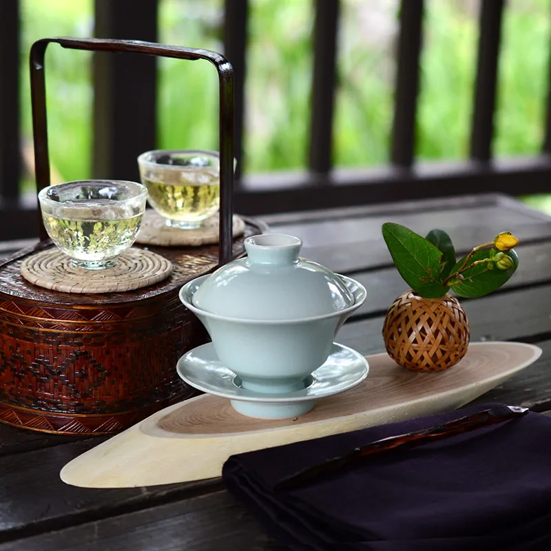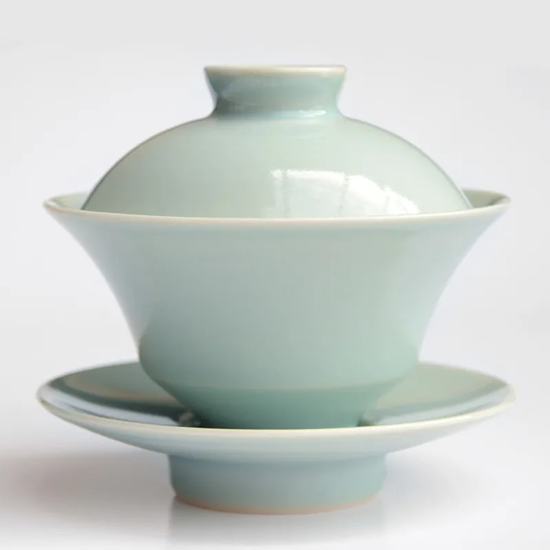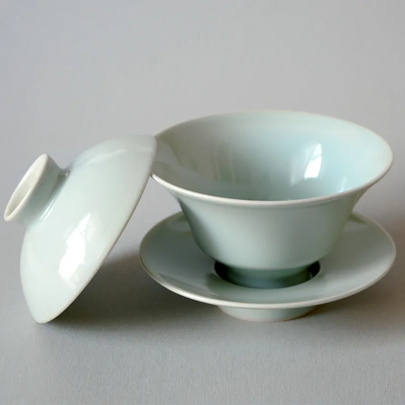 Porcelain gaiwan with celadon glazing by Kawai Masamitsu