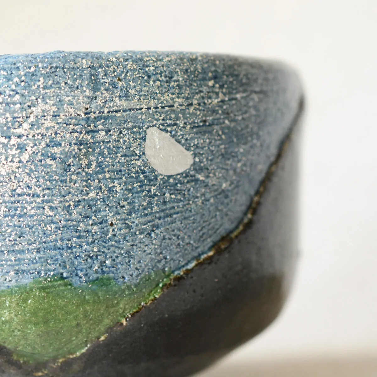 Beautiful and excellently priced Raku Yaki chawan made by Shoraku Sasaki III. I had Sazen do the initiation (which was reasonably priced). I asked for pictures of their inventory so I could pick the one I wanted and Agnes was a sweetheart emailing during the process. Great communication and excellent service as always. This bowl shows off the beautiful color of the tea and it is very light, but at the same time substantial. Holds heat very well. Makes the entire tea ceremony a beautiful experience. The midnight moon design is even more beautiful in person. It really does look like the reflection of the moon on a lake on a dark night. Although the design looks to be predominantly a wash of 'blue', within that 'blue' there are other hues to be seen: cream, mauve, silver, metallic tones. One of my favorite bowls in my small collection of chawans.