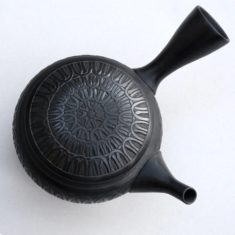 Engraved tokoname clay teapot from Gyokko kiln • 260 ml