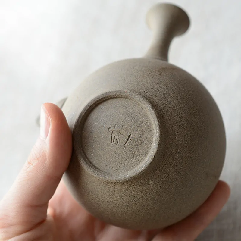 The decoration is made with the Mogake technique, developed in the 19th century. They wrap the clay teapot with Amamo seaweed and during the firing in the kiln, the reaction between the minerals of the seaweed and the teapot creates a unique oxidized and burned pattern on the surface.