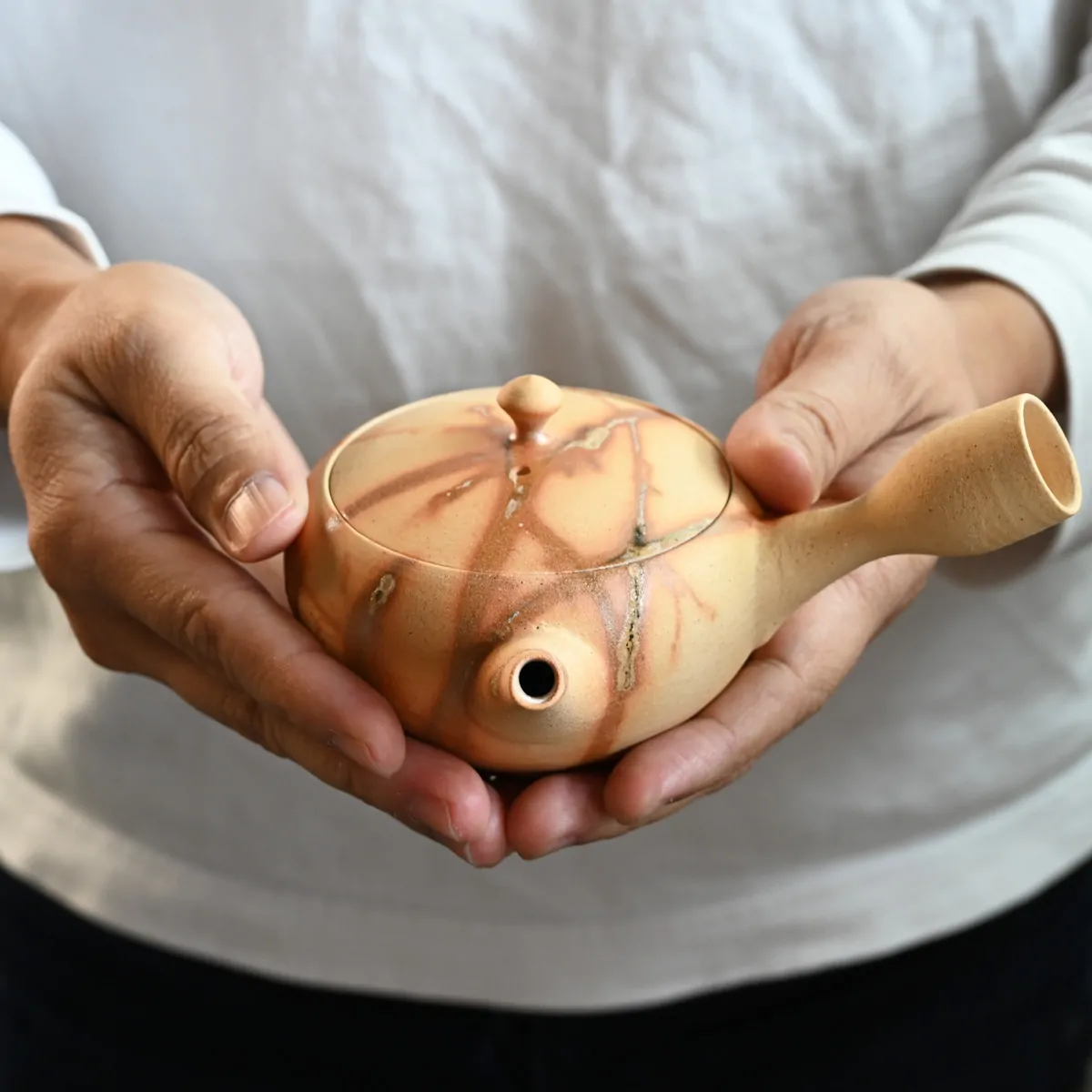 This yokode kyusu (side-handled teapot) is crafted with exceptional precision to ensure a smooth, steady pour without drips—ideal for Japanese green teas.