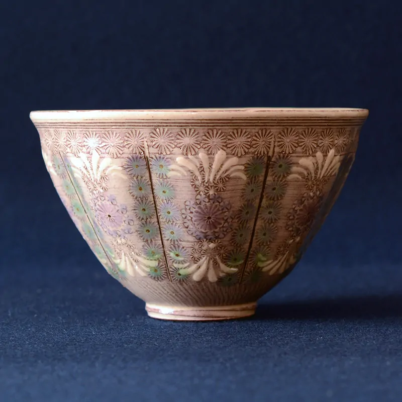 Matcha tea bowl inlaid with floral motifs